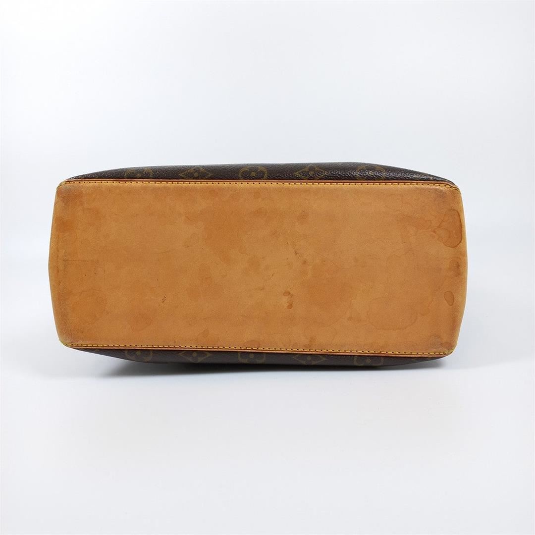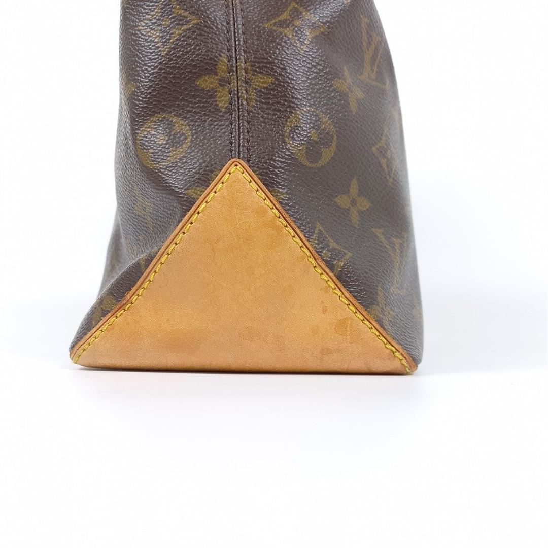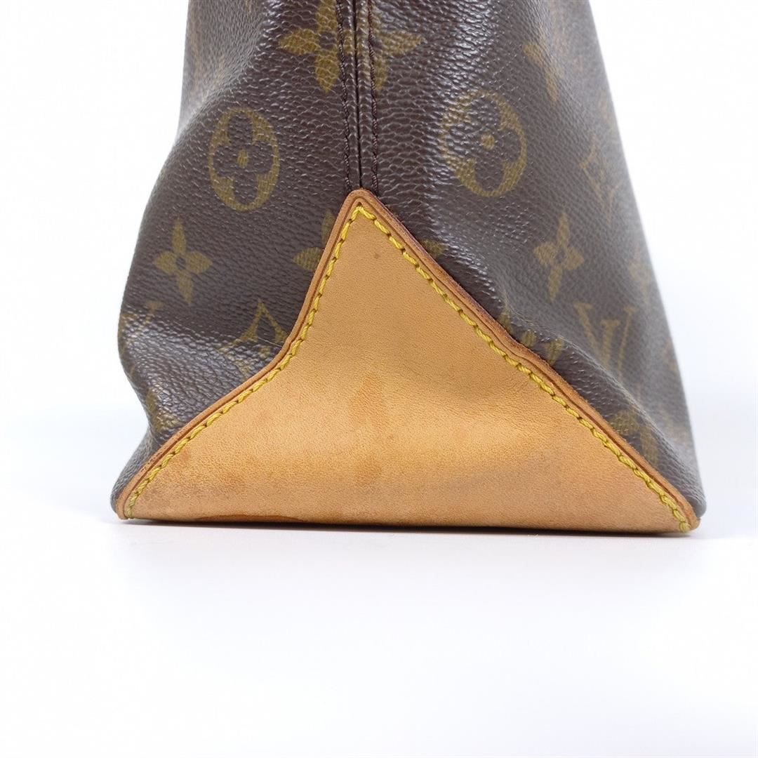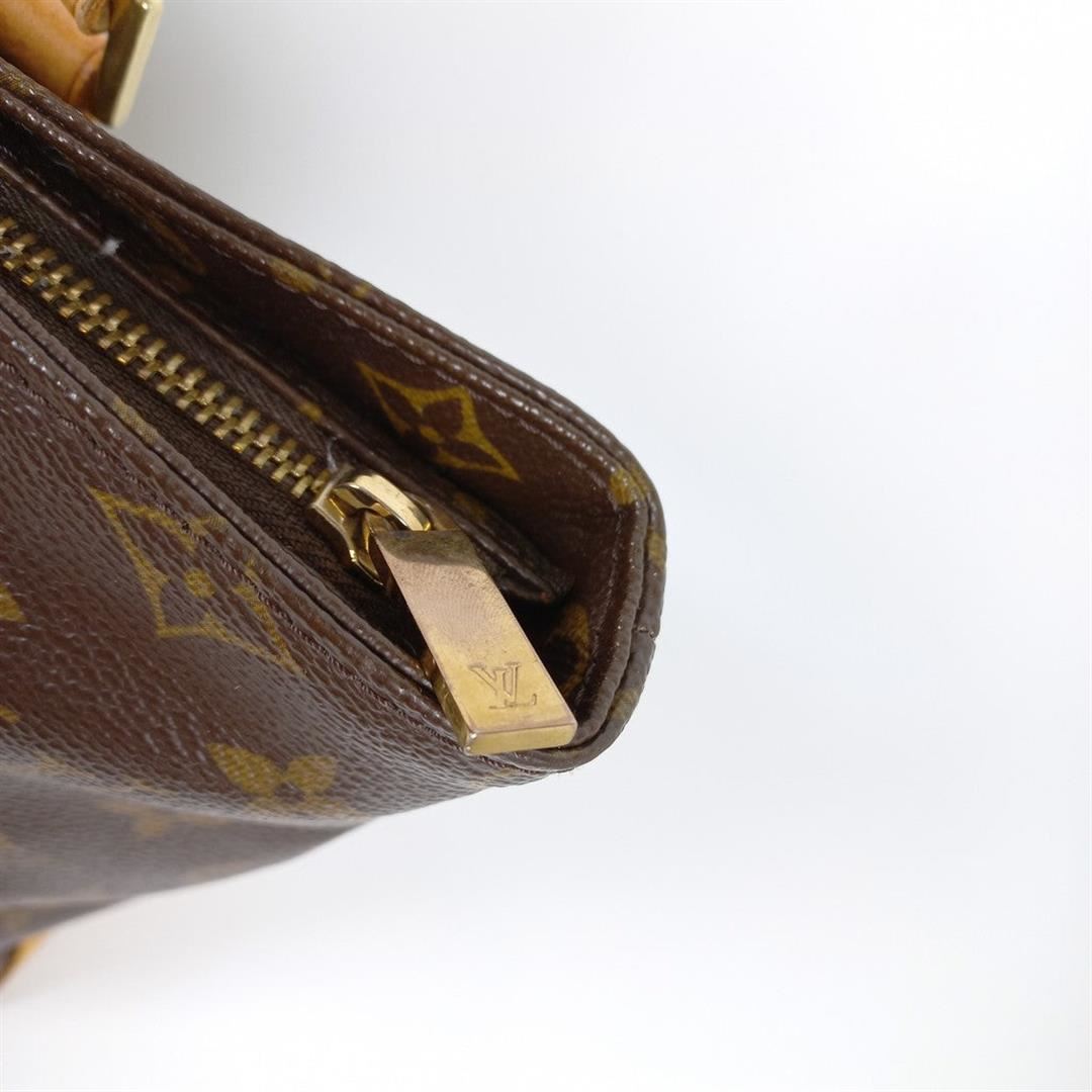 Brown and tan monogram coated canvas Louis Vuitton Cabas Mezzo tote bag with gold-tone hardware, tan vachetta leather trim, dual flat shoulder straps, brown canvas lining, dual interior wall pockets; one with zip closure and zip closure at top. 3