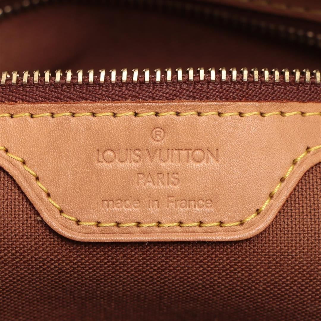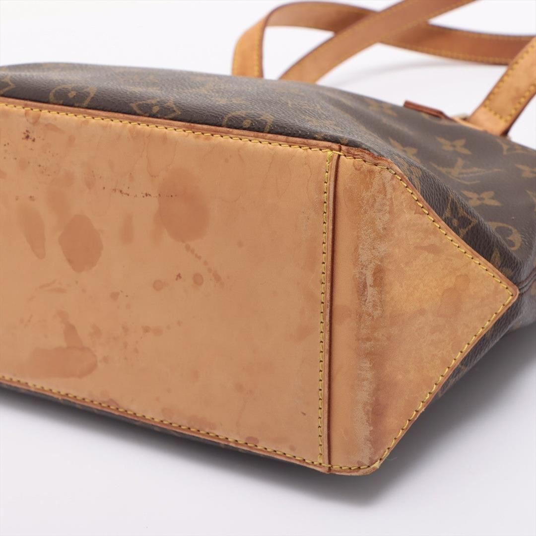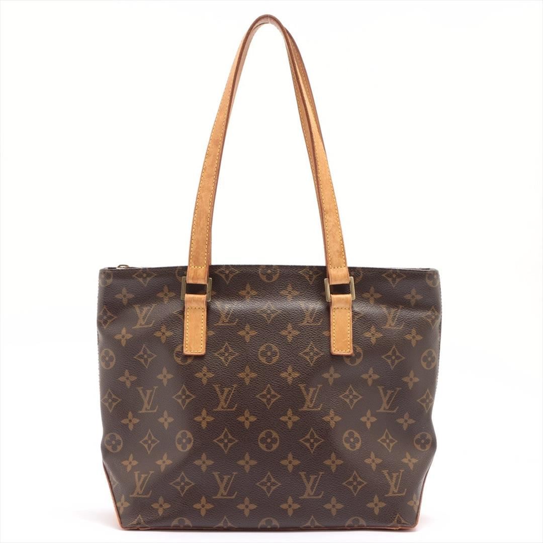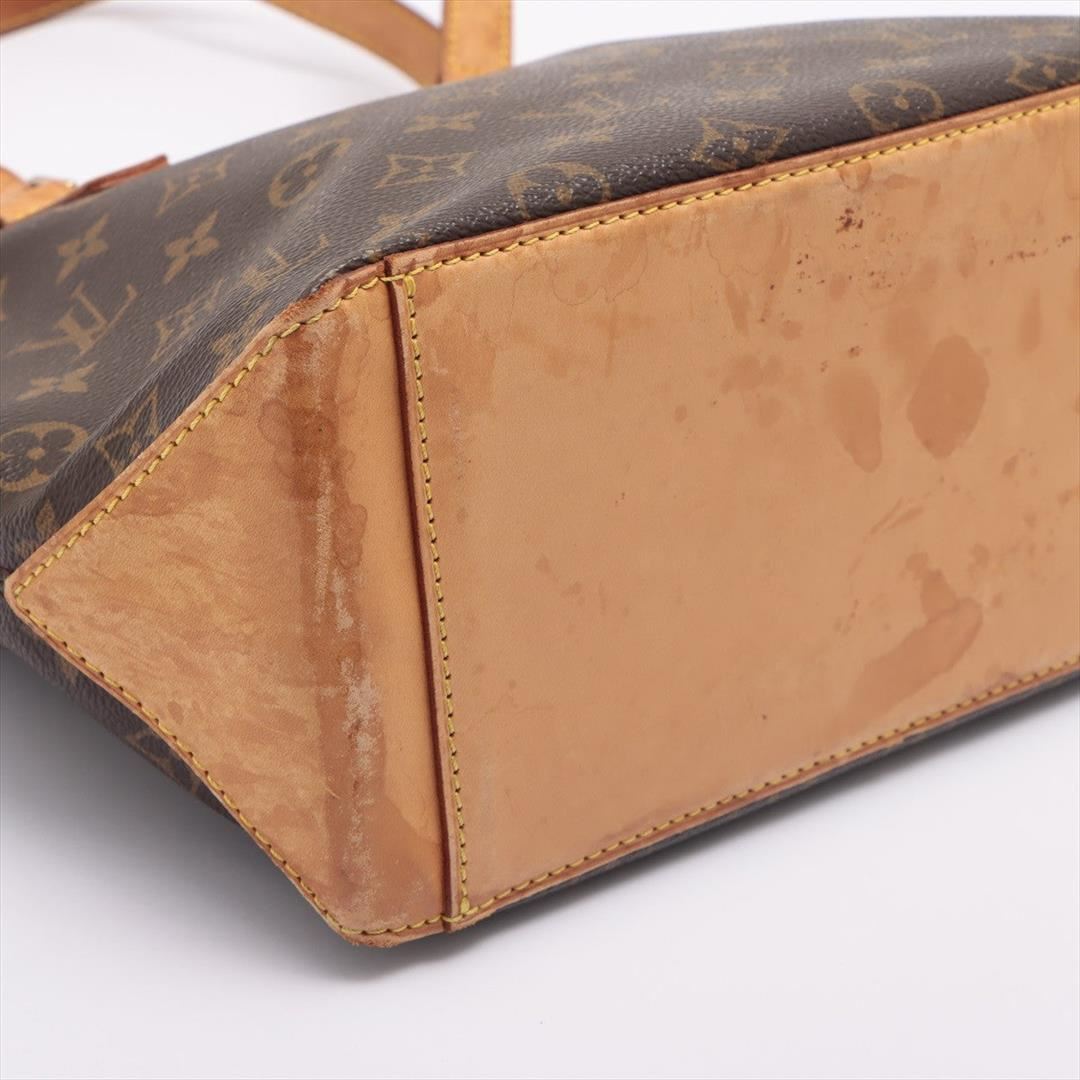 Brown and tan monogram coated canvas Louis Vuitton Cabas Piano tote with gold-tone hardware, tan vachetta leather trim, dual flat shoulder straps, brown canvas lining, dual pockets at interior wall; one with zip closure and zip closure at top. 13"x4.5"x9.5"xBag Drop:9"/33cmx11.4cmx24.1cmxBag Drop:22.8cm