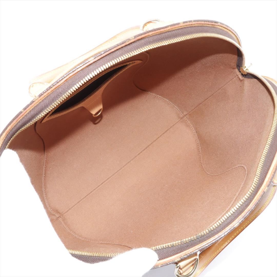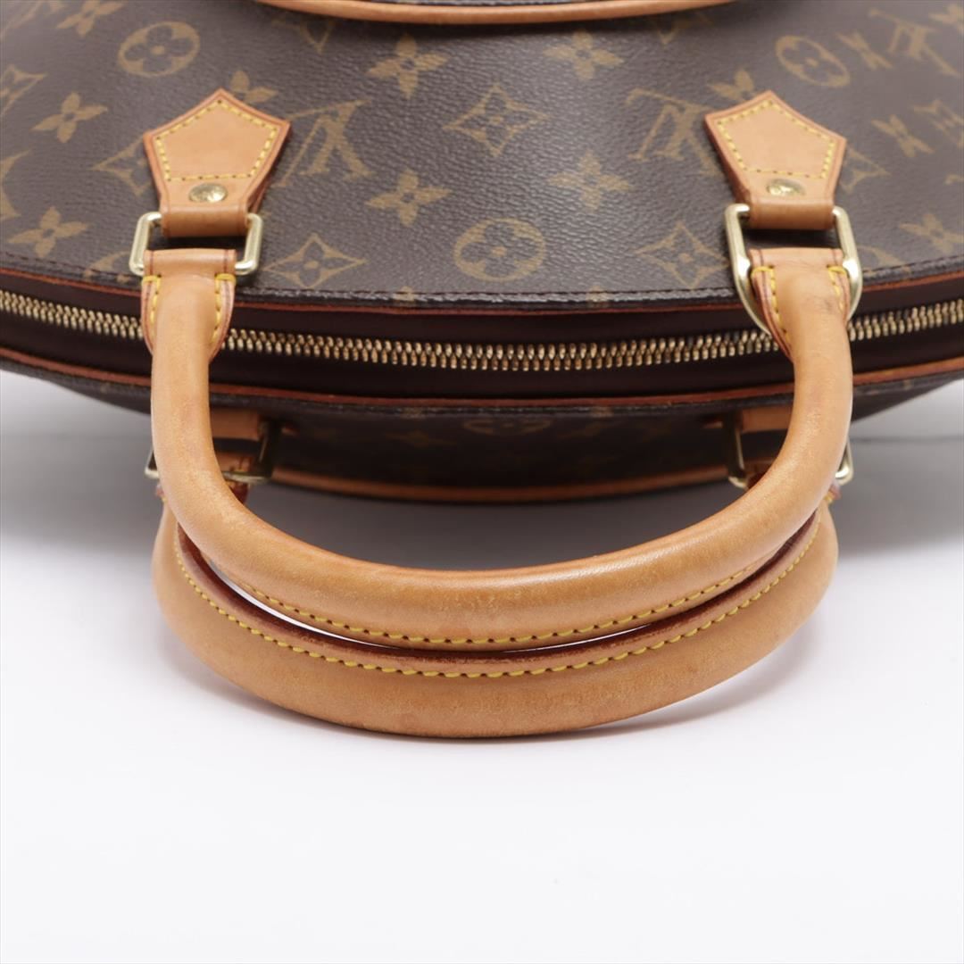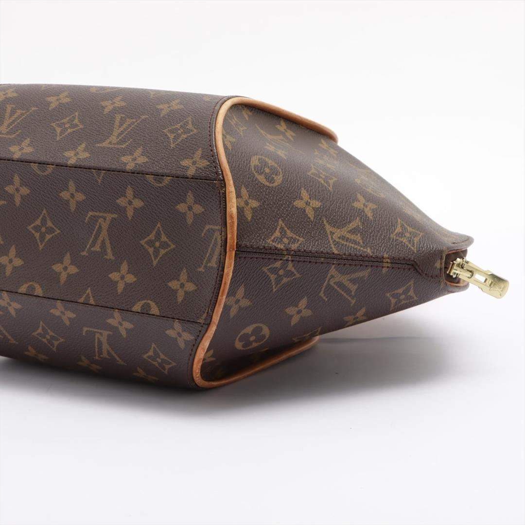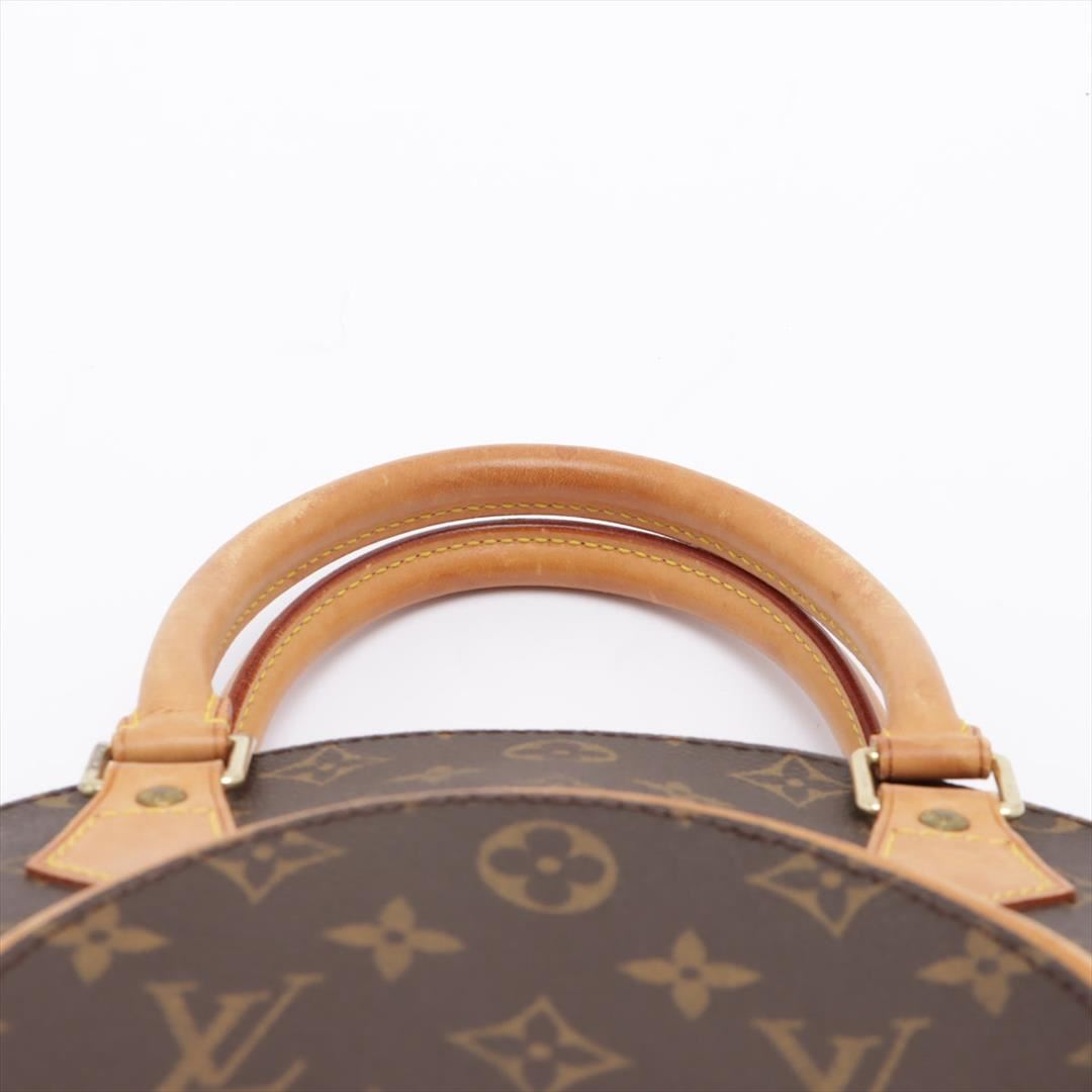 Brown and tan monogram coated canvas Louis Vuitton Monogram Ellipse MM with brass hardware, tan vachetta leather accents, dual rolled top handles, brown canvas lining, single pocket at interior wall and two-way zip closure at top. 6 10"x3"x12"xBag