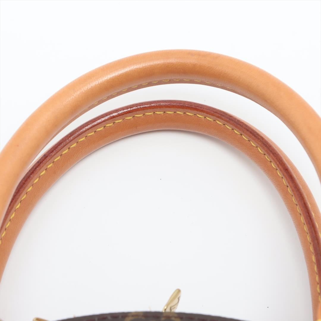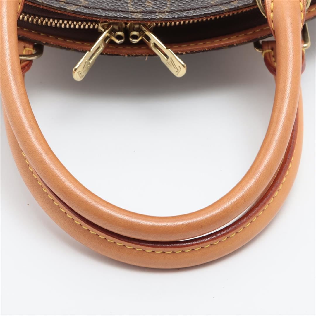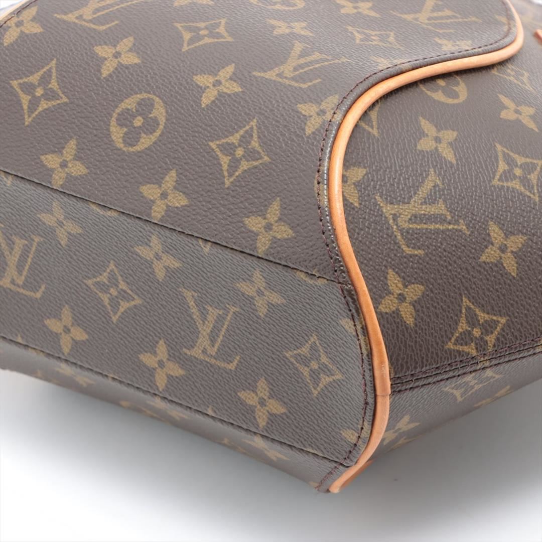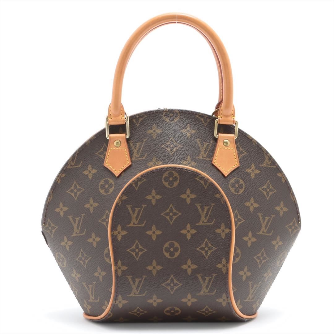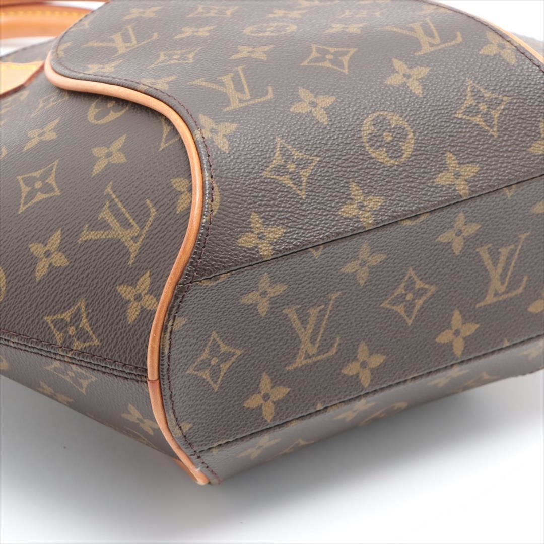 Brown and tan monogram coated canvas Louis Vuitton Ellipse PM with gold-tone hardware, tan vachetta leather trim, dual rolled handles, brown canvas lining, single slit pocket at interior wall and zip closure at top. 13.5"x6x10.5"xBag Drop:4"/34.2cmx15.
