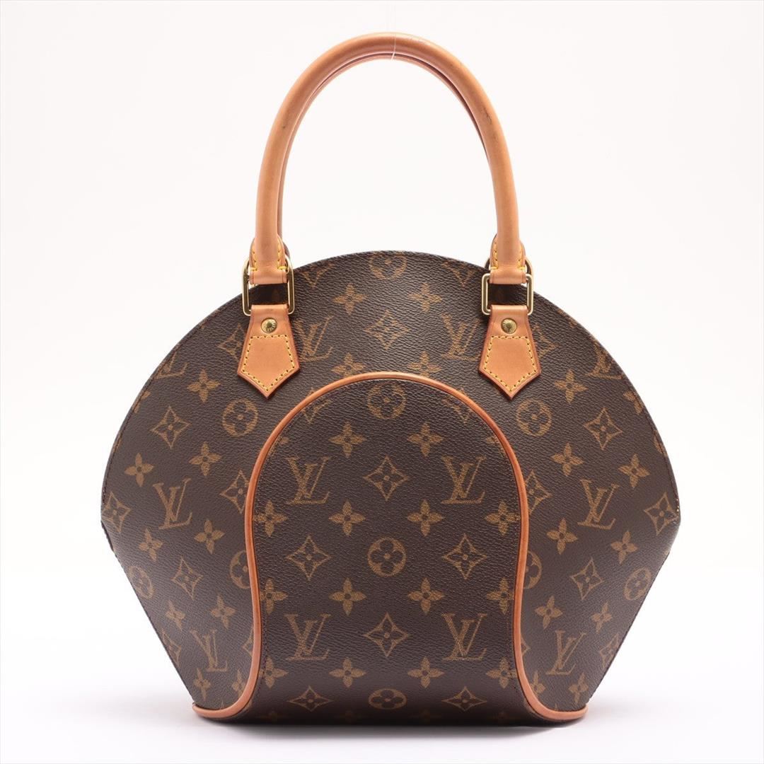 Brown and tan monogram coated canvas Louis Vuitton Ellipse PM with gold-tone hardware, tan vachetta leather trim, dual rolled handles, brown canvas lining, single slit pocket at interior wall and zip closure at top. 13.5"x6"x10.5"xBag Drop:4"/34.2cmx15.2cmx26.6cmxBag Drop:10.1cm