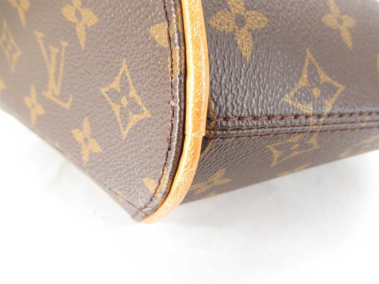 One Louis Vuitton Brown Monogram Canvas Leather Ellipse PM Handbag. Item is sold AS-IS. All available information is listed in the description and shown in the photo. Brown and tan monogram coated canvas Louis Vuitton Ellipse PM with gold-tone hardware, tan vachetta leather trim, dual rolled handles, brown canvas lining, single slit pocket at interior wall and zip closure at top. Height: 10" Width: 13.25" Depth: 2.5" Handle Drop: 4"