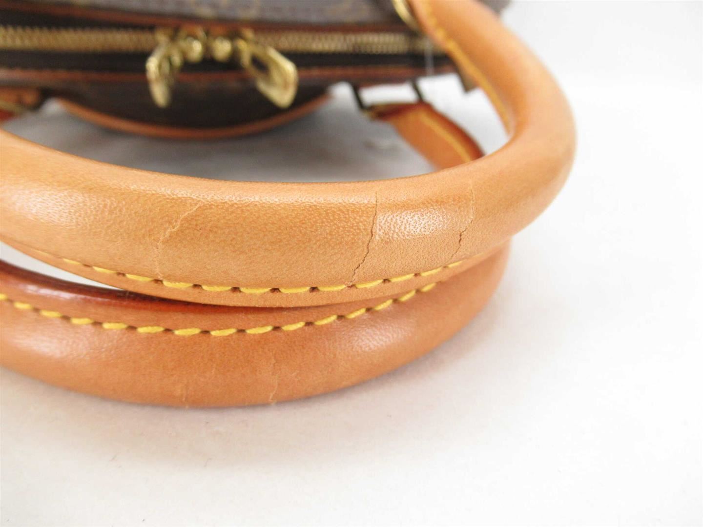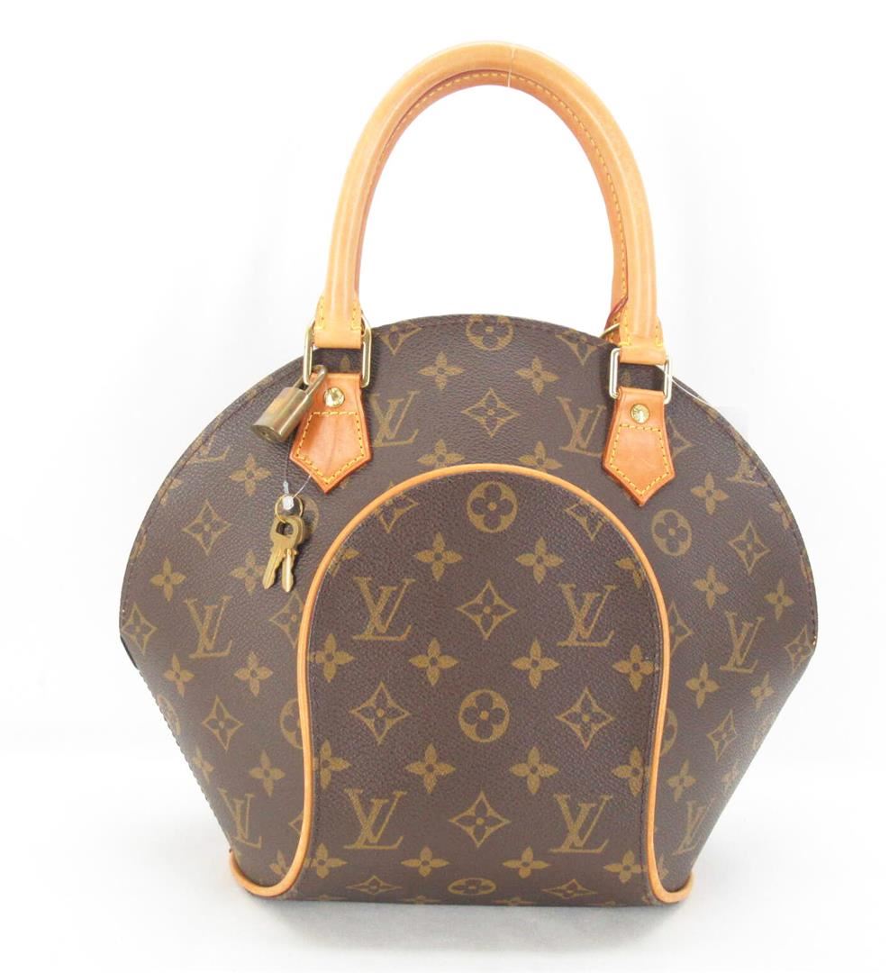 One Louis Vuitton Brown Monogram Canvas Leather Ellipse PM Handbag. Item is sold AS-IS. All available information is listed in the description and shown in the photo. Brown and tan monogram coated canvas Louis Vuitton Ellipse PM with gold-tone hardware, tan vachetta leather trim, dual rolled handles, brown canvas lining, single slit pocket at interior wall and zip closure at top. Height: 10" Width: 13.25" Depth: 2.5" Handle Drop: 4"