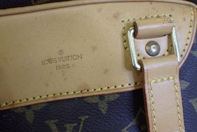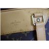 Brown and tan monogram coated canvas Louis Vuitton Excursion bag with gold-tone hardware, tan vachetta leather trim, dual flat top handles, beige canvas lining, single interior wall pocket and two-way zip-around closure. .75"x12.5"xBag Drop:5"/mx12cmx