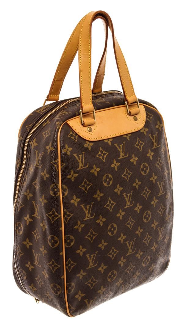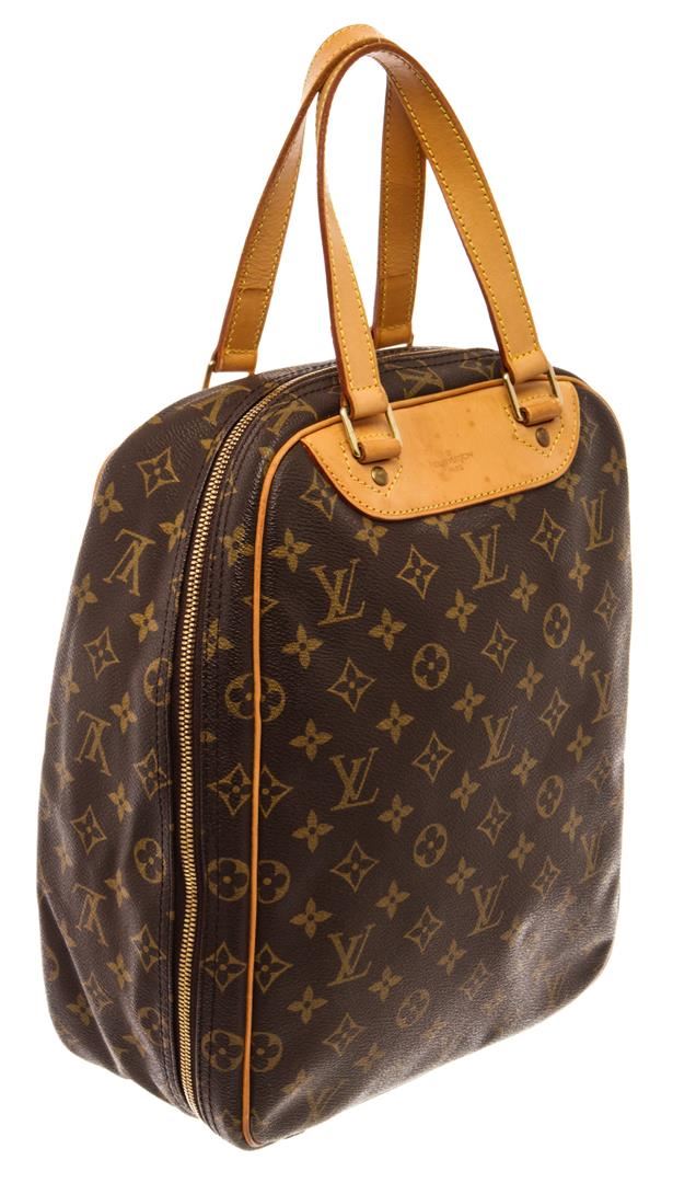 Louis Vuitton Brown Monogram Canvas Leather Excursion Travel Bag. All available information is listed in the description and shown in the photos. Louis Vuitton Brown Monogram Canvas Leather Excursion Travel Bag with the excursion features a monogram canvas body, flat vachetta handles, gold-tone hardware, vachetta trim, canvas lining, a zip around closure at side, and an interior slip pocket. 12.6" L x 7.9" W x 4.3" D, Drop : 5.5" / 32.00 x 20.06 x 10.92 Cm