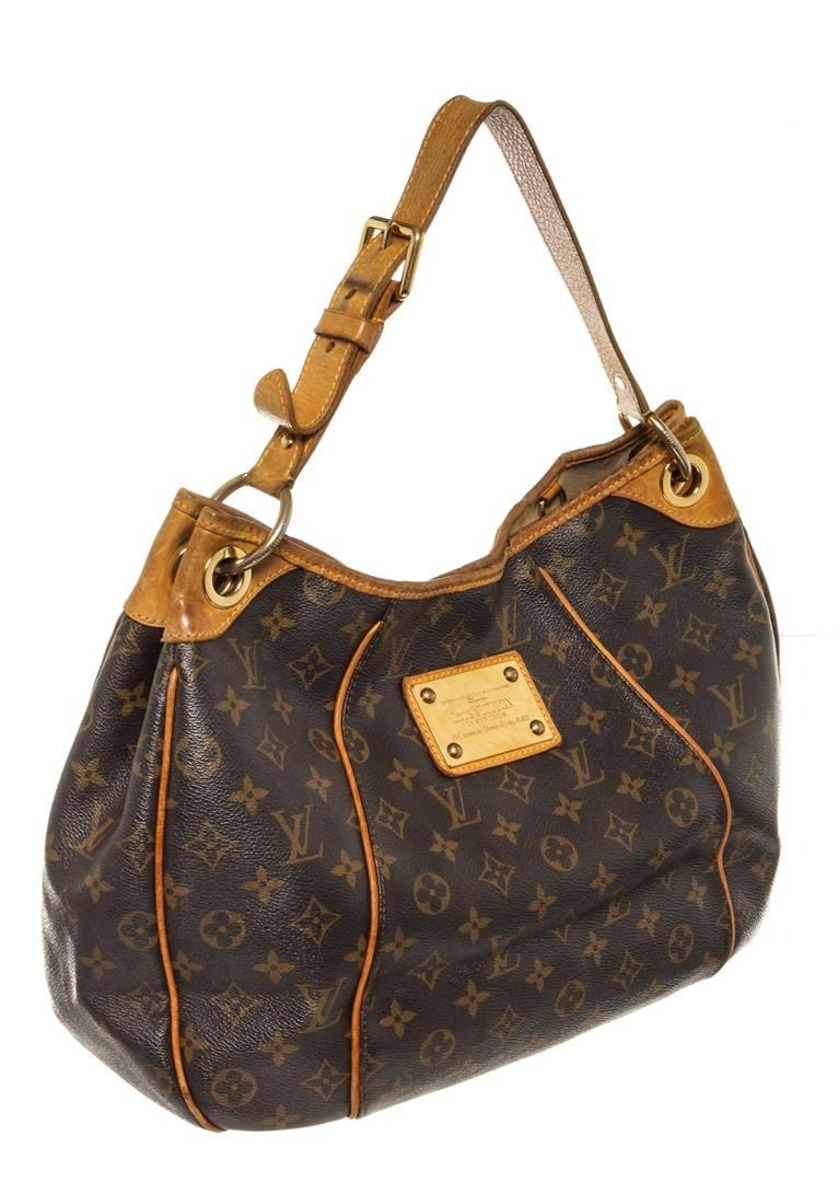 Louis Vuitton Brown Monogram Canvas Leather Galliera PM Hobo Bag. All available information is listed in the description and shown in the photos. Brown and tan monogram coated canvas Louis Vuitton Galliera PM with gold-tone hardware, tan vachetta leather trim, single flat shoulder strap, logo placard at front face, beige Alcantara lining, single pocket at interior wall with flap and snap closure and magnetic snap closure at top.