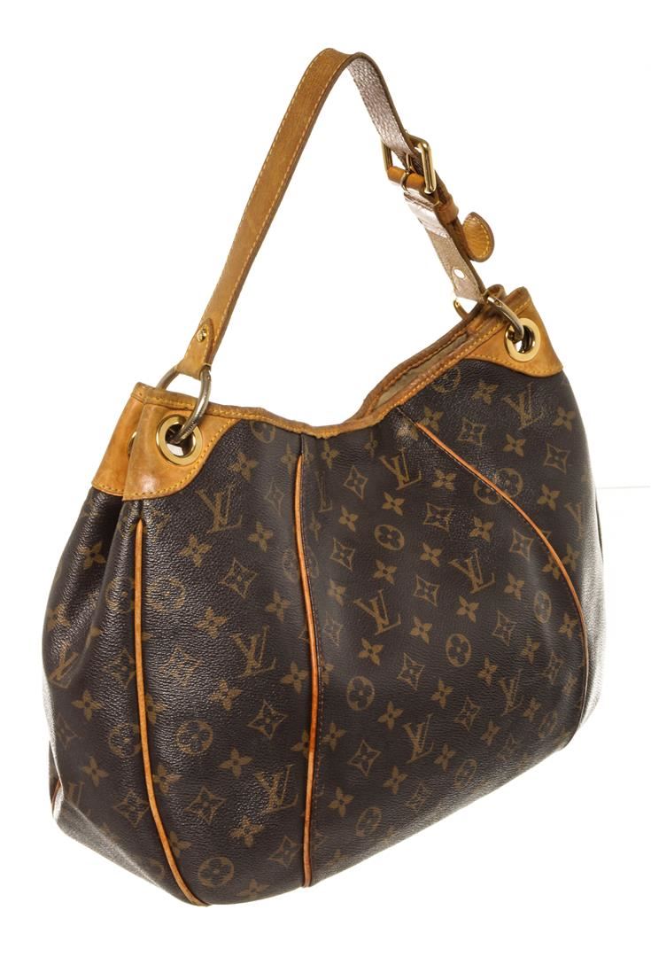 Louis Vuitton Brown Monogram Canvas Leather Galliera PM Hobo Bag. All available information is listed in the description and shown in the photos. Brown and tan monogram coated canvas Louis Vuitton Galliera PM with gold-tone hardware, tan vachetta leather trim, single flat shoulder strap, logo placard at front face, beige Alcantara lining, single pocket at interior wall with flap and snap closure and magnetic snap closure at top.