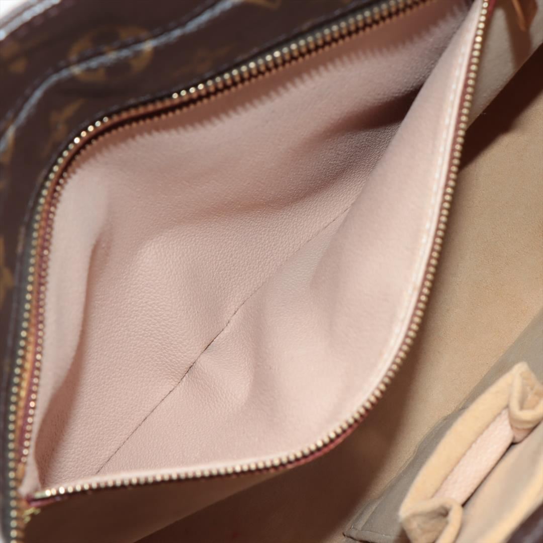 Brown and tan monogram coated canvas Louis Vuitton Luco tote with gold-tone hardware, tan vachetta leather trim, dual flat shoulder straps, beige Alcantara lining, five pockets at interior walls, single zip pocket and zip closure at top. 15.5"x3.5"x12"