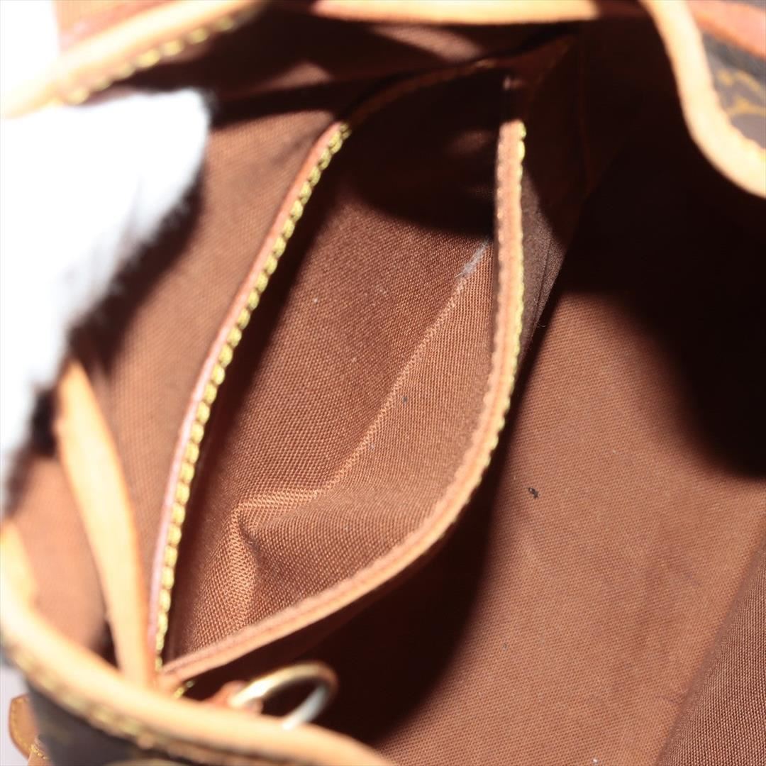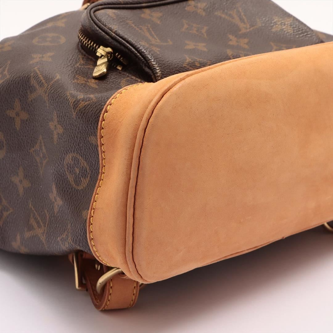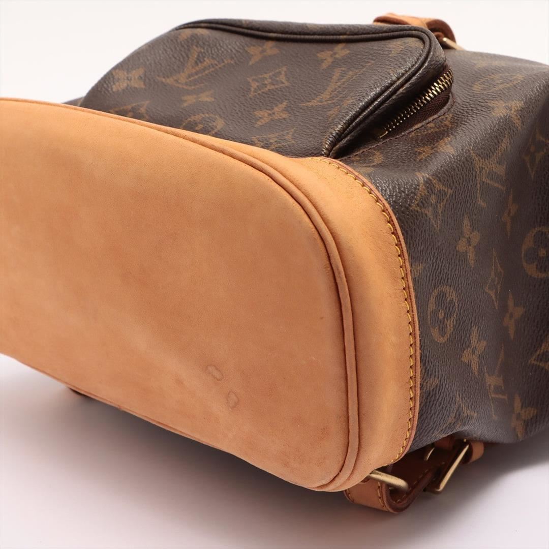 One Louis Vuitton Brown Monogram Canvas Leather Montsouris MM Backpack Bag. Item is sold AS-IS. All available information is listed in the description and shown in the photo. Brown and tan monogram coated canvas Louis Vuitton Montsouris MM with gold-tone hardware, tan vachetta leather trim, dual adjustable shoulder straps, single pocket at exterior with zip closure, brown canvas lining, single slit pocket at interior wall, drawstring closure at top and flap with buckle closure at front. 10"x4.5"x7"xStrap Length:27"/25.4cmx11.4cmx17.7cmxStrap Length:68.5cm