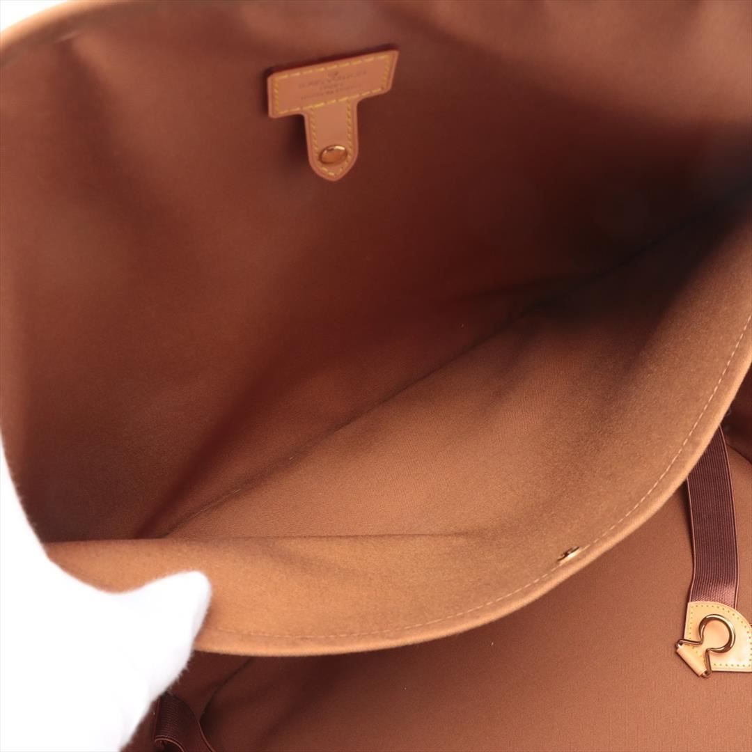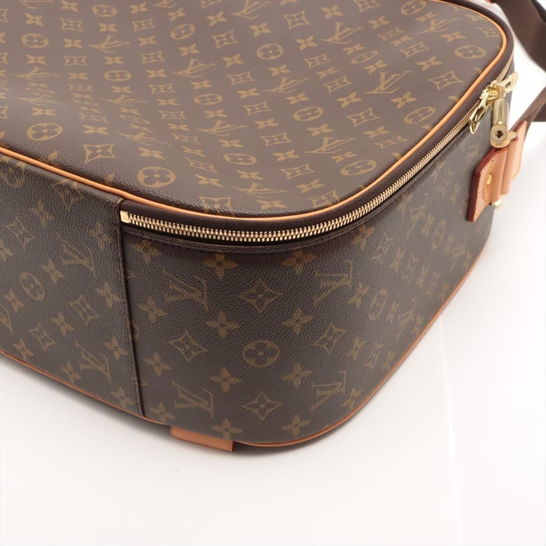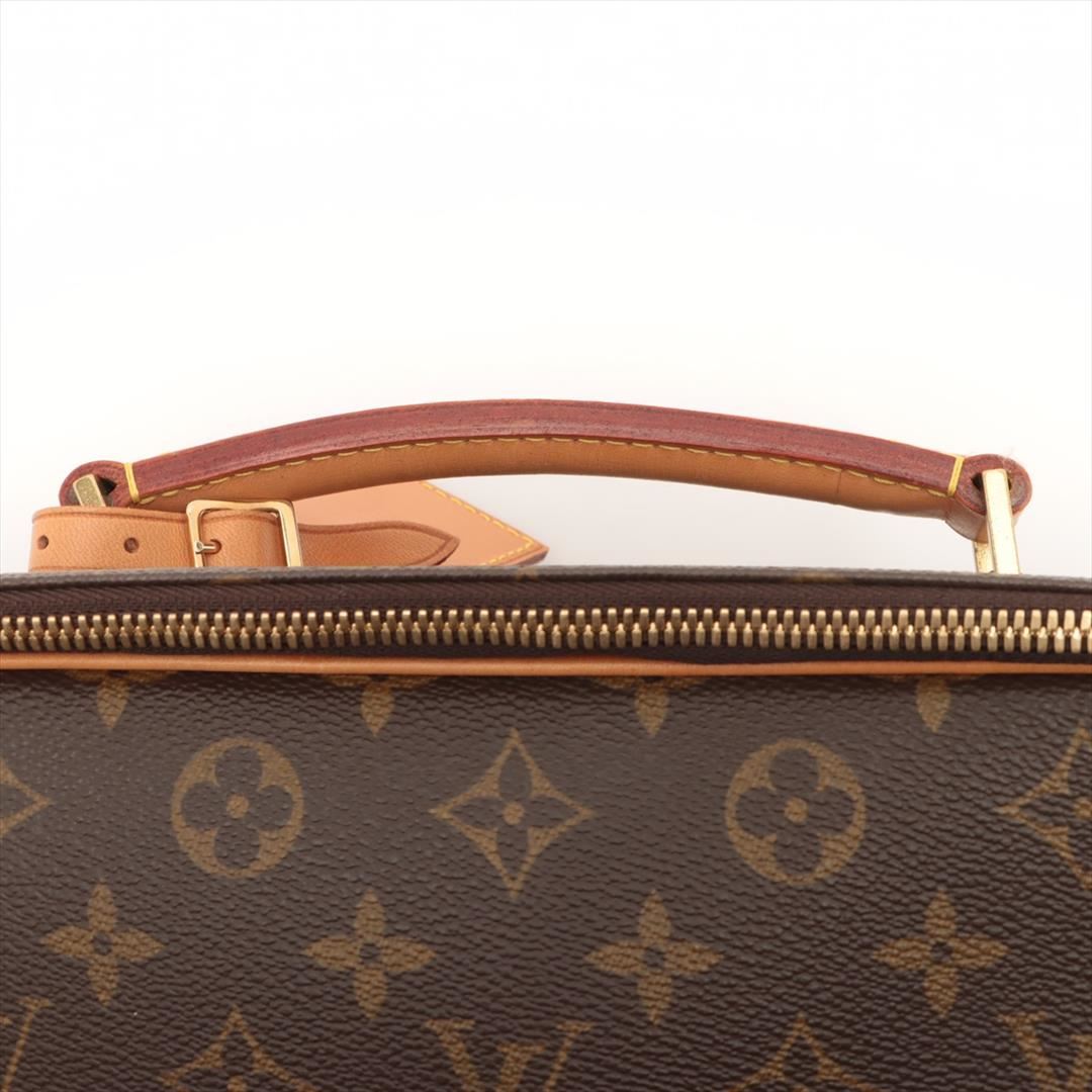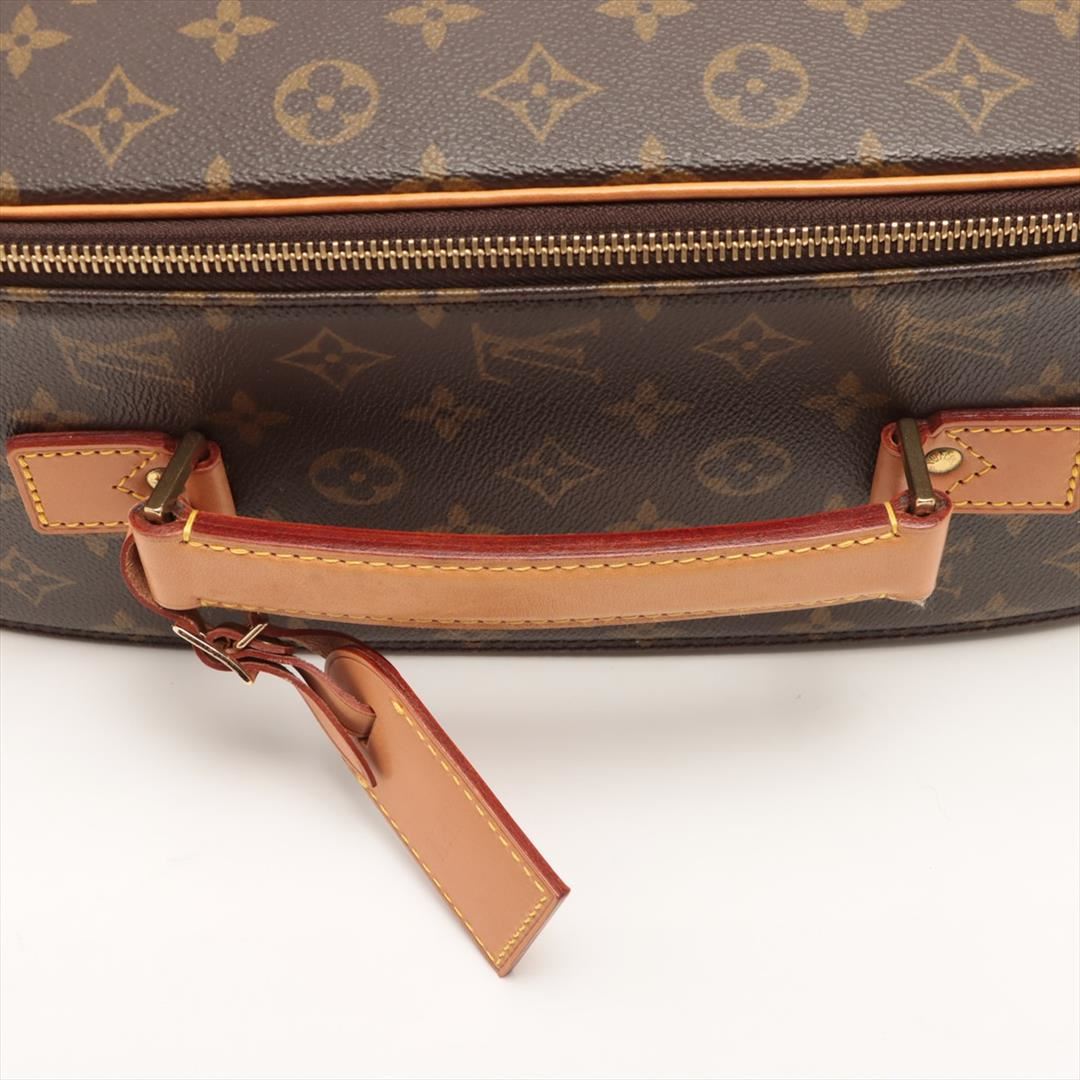Brown and tan coated canvas Louis Vuitton Monogram Packall PM with gold-tone hardware, tan vachetta leather trim featuring yellow contrast stitching, adjustable canvas shoulder strap, single flat top handles featuring ID tag, brown woven lining, dual pock