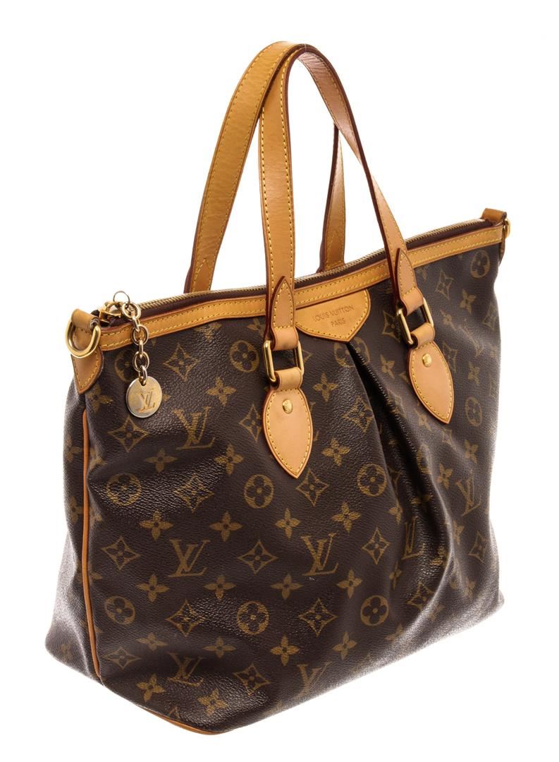 Louis Vuitton Brown Monogram Canvas Leather Palermo PM Shoulder Bag. All available information is listed in the description and shown in the photos. Louis Vuitton Brown Monogram Canvas Leather Palermo PM Shoulder Bag with gold-tone hardware, tan vachetta leather trim, dual flat adjustable top handles, and pleated detail at exterior, brown woven lining, three interior slit pockets and zip closure at top, optional adjustable shoulder strap. Height: 11" Width: 6.5" Depth: 14.5", / 27.94 x 16.51 x 36.83 Cm