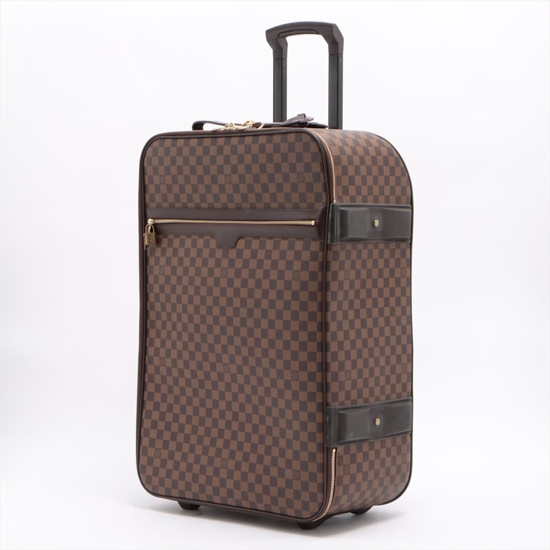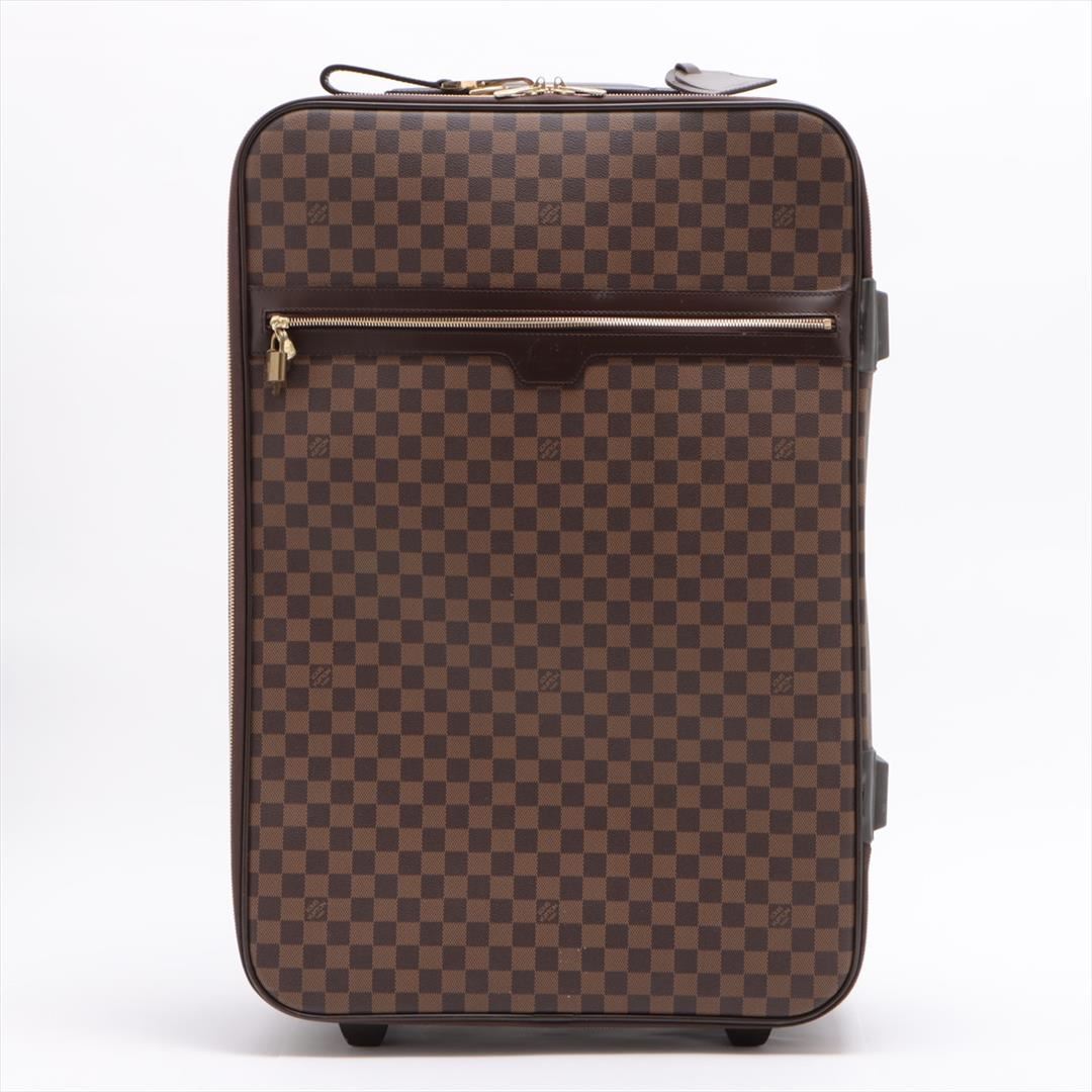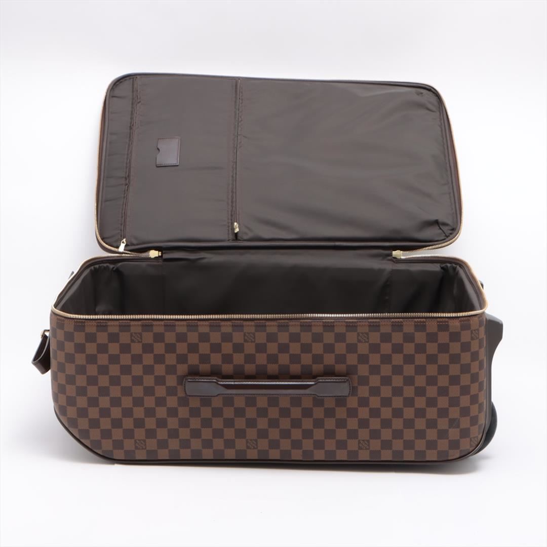 Men's brown and tan monogram coated canvas Louis Vuitton Pegase 70cm with gold-tone hardware, tan vachetta leather trim, dual flat handles at exterior, single telescopic handle, single slit pocket at exterior, brown nylon lining, single interior zip pocke