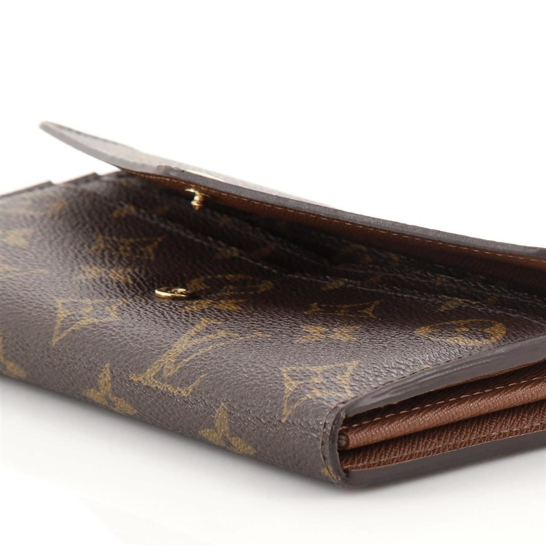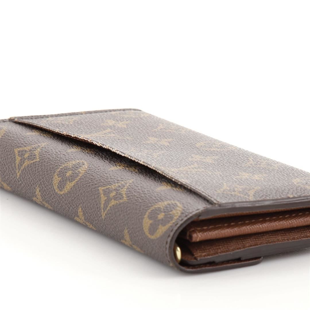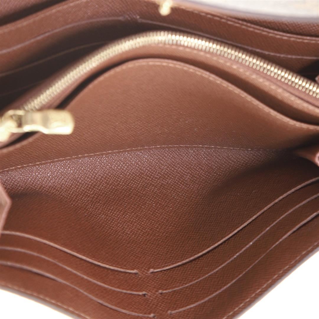 Louis Vuitton Brown Monogram Canvas Leather Sarah Wallet NM Condition Details: Moderate peeling on exterior corners, curling on flap, rear pocket and interior card slot edges. Minor wear in interior, scratches and discoloration on hardware. Measurements: Height 4", Width 7.5", Depth 1", Strap Drop -"