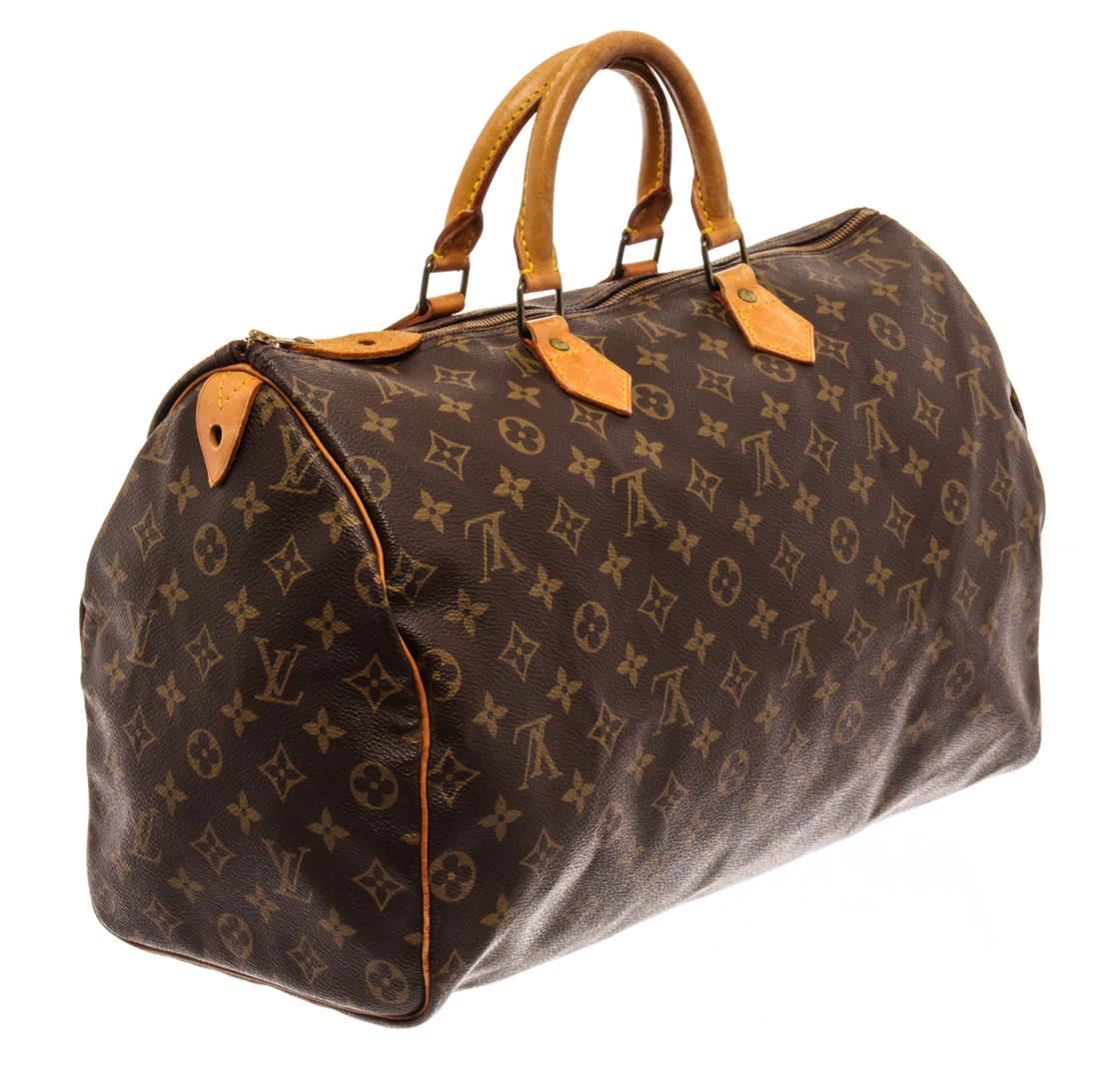 Louis Vuitton Brown Monogram Canvas Leather Speedy 40 Satchel Bag. All available information is listed in the description and shown in the photos. Louis Vuitton Brown Monogram Canvas Leather Speedy 40 Satchel Bag with brass hardware, leather trim, rolled handles & dual shoulder straps, leather trim embellishment, canvas lining & single interior pocket, zip closure at top. Height: 14" Width: 15" Depth: 8", Handle Drop: 4" / 35.56 x 38.1 x 20.32 Cm
