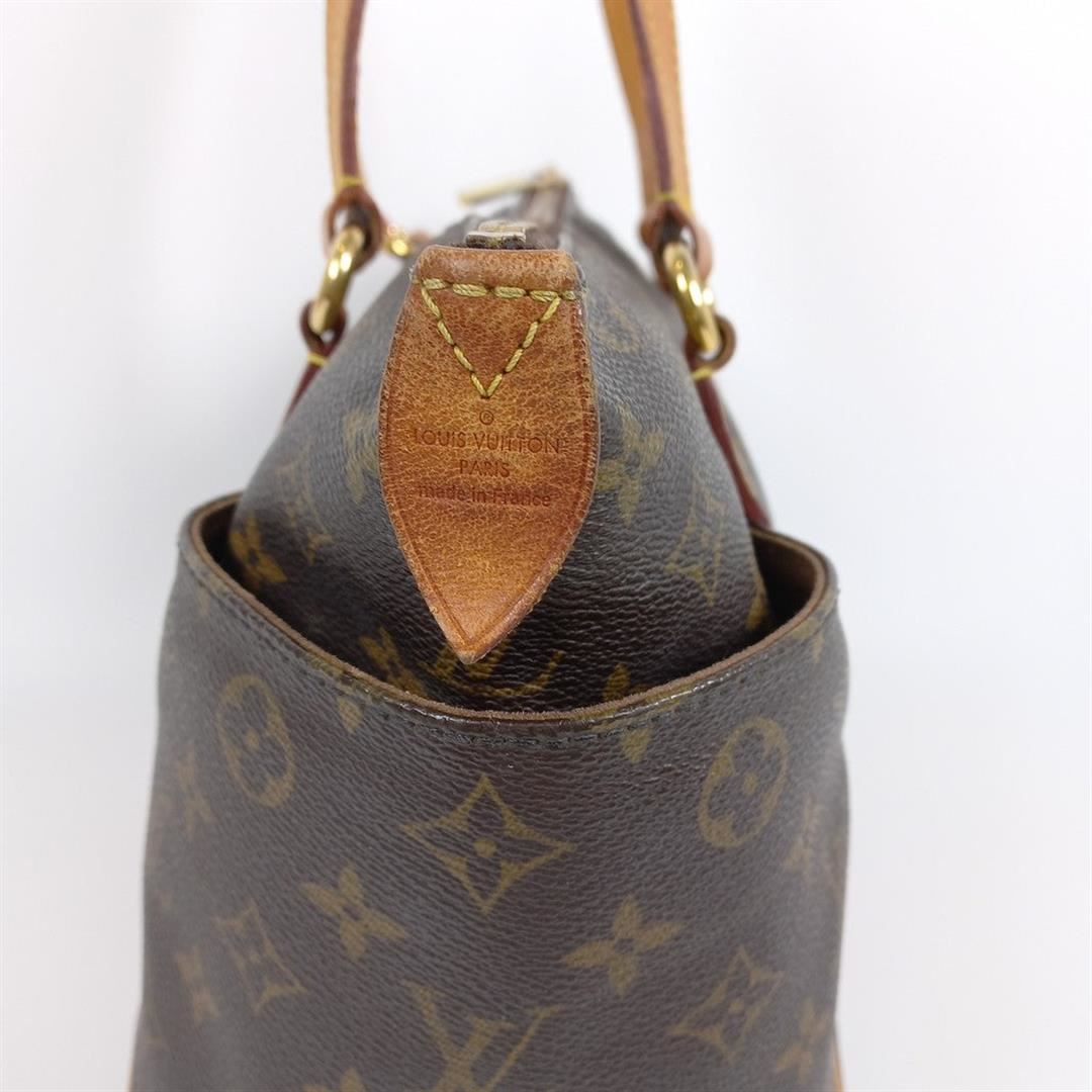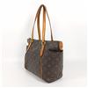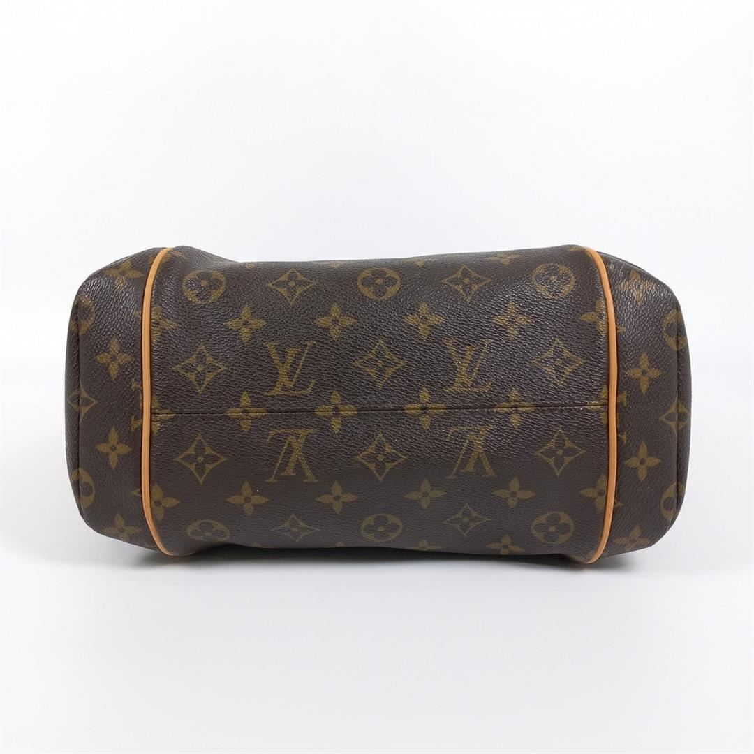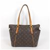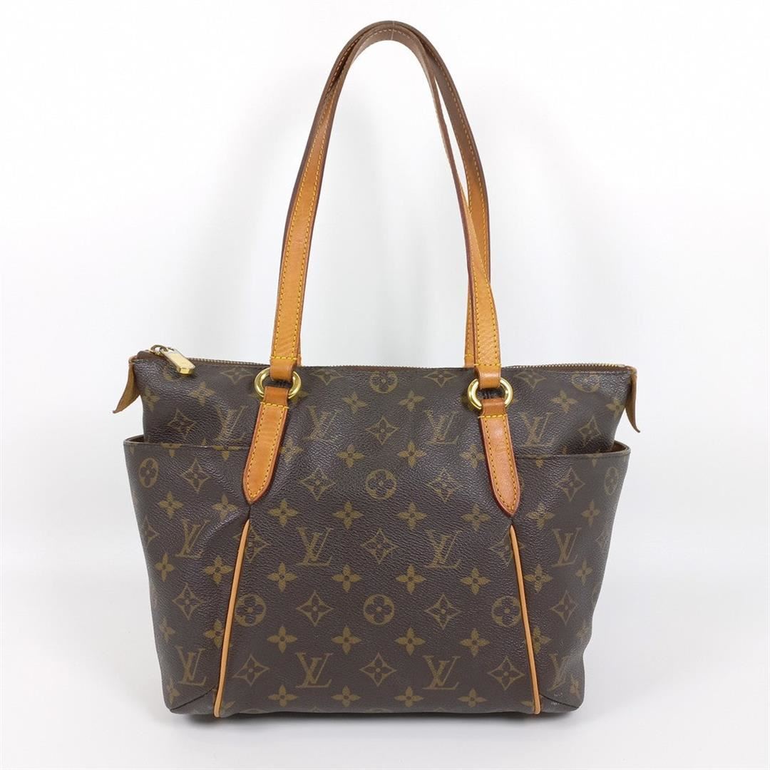 Brown and tan monogram coated canvas Louis Vuitton Totally PM with gold-tone hardware, tan vachetta leather trim, dual flat shoulder straps, dual exterior slip pockets at sides, brown woven canvas lining, three slip pockets at interior walls and zip closu