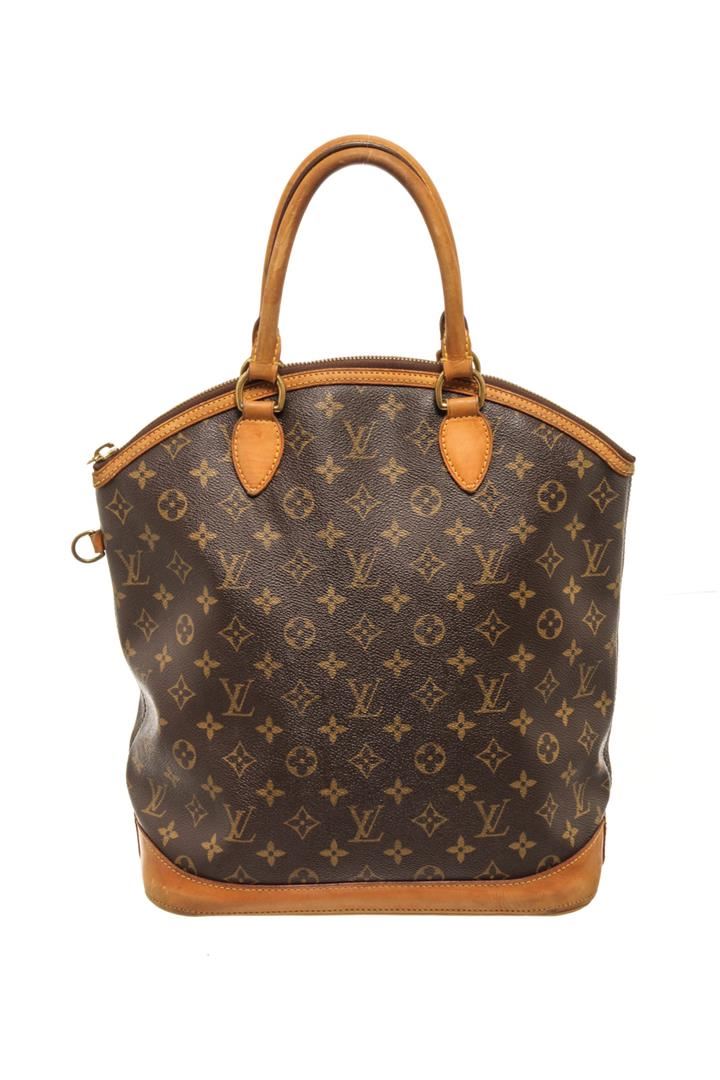 One Louis Vuitton Brown Monogram Canvas Lockit Vertical Tote Bag. Item is sold AS-IS. All available information is listed in the description and shown in the photo. Louis Vuitton Brown Monogram Canvas Lockit Vertical Tote Bag with leather is stained. the corners, the zipper pull and the handles are slightly rubbed, zipper pull is off, bottom is worn. Please refer to photos. 28cm x 29cm x 11cm / 11.02" x 11.41" x 4.33" Inches