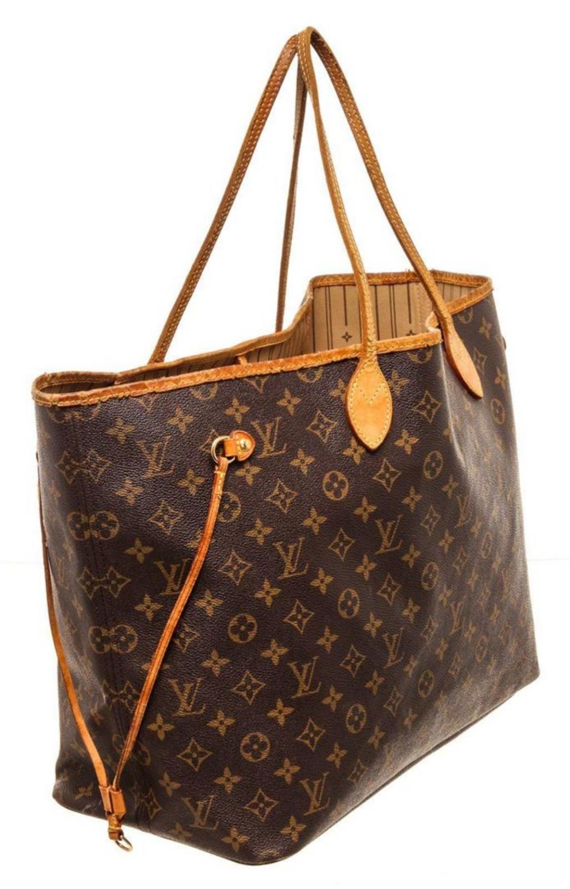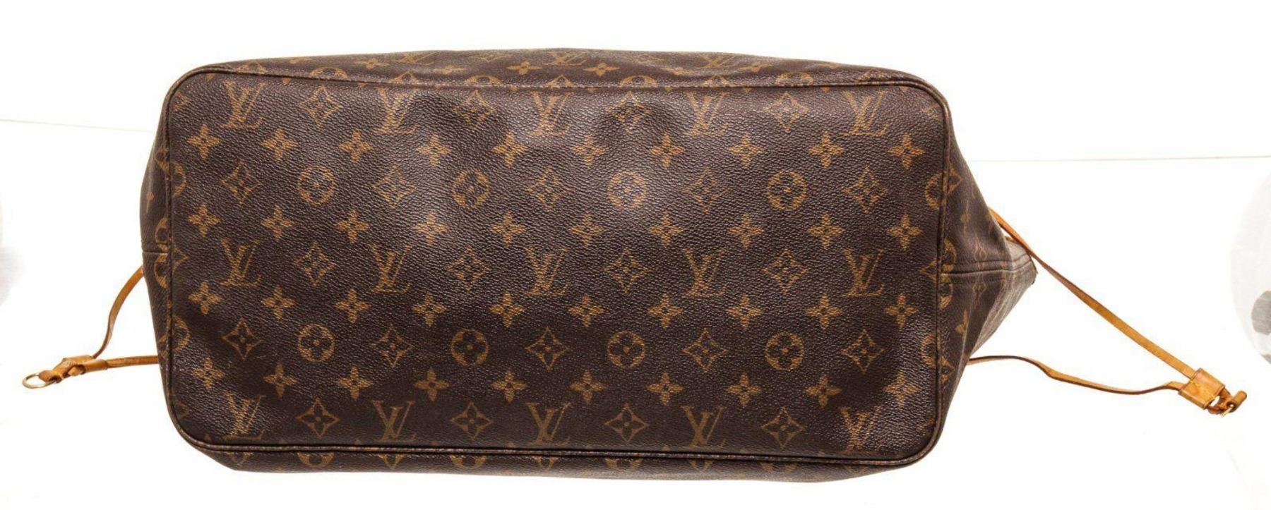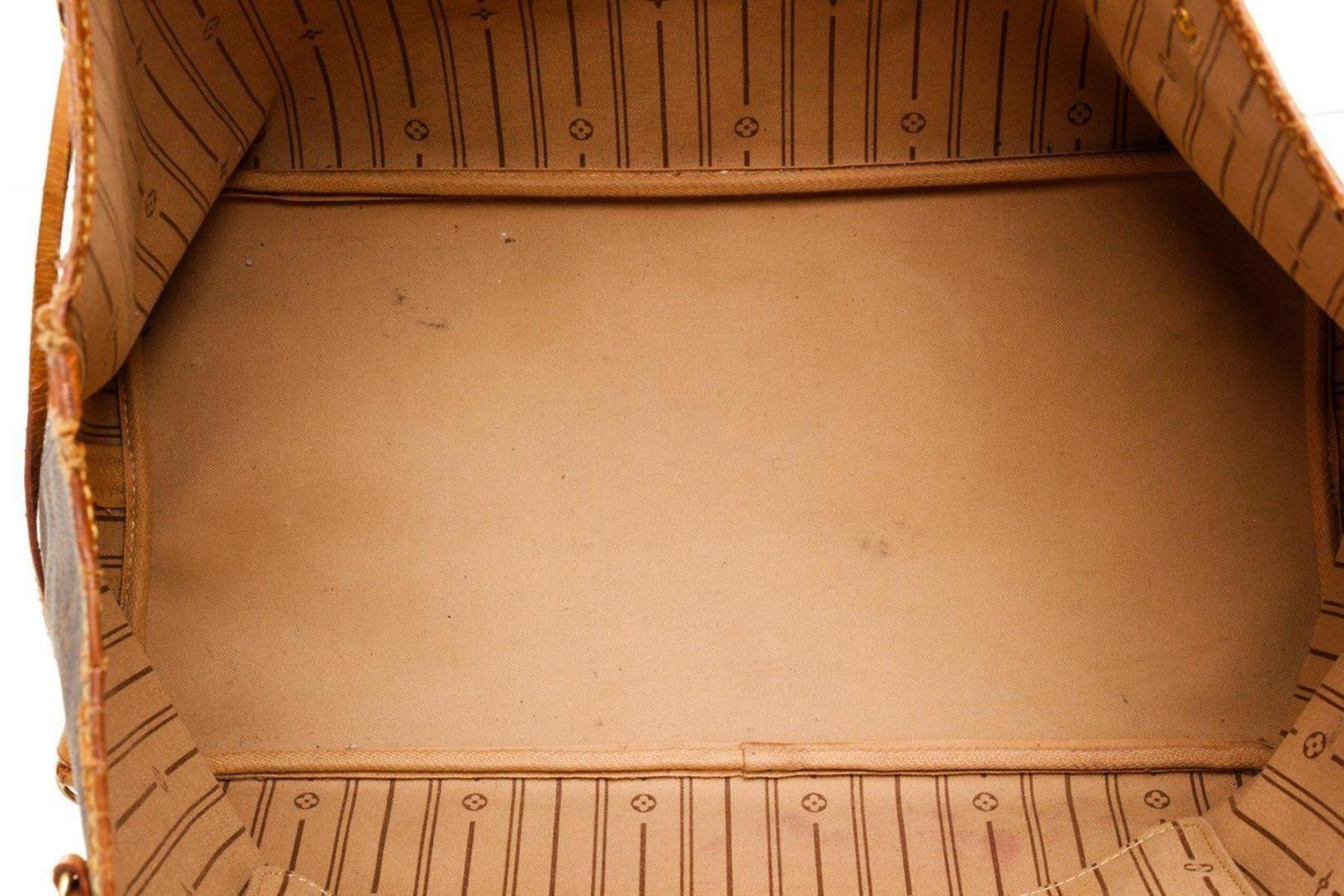 Louis Vuitton Brown Monogram Canvas Neverfull GM Tote Bag with monogram canvas, gold-tone hardware, trim tan vachetta leather, interior zip pocket, dual top handle, shoulder strap and snap closure.