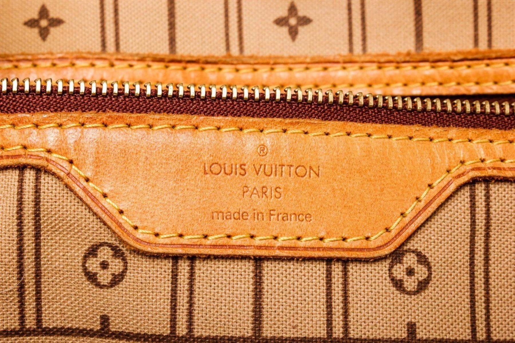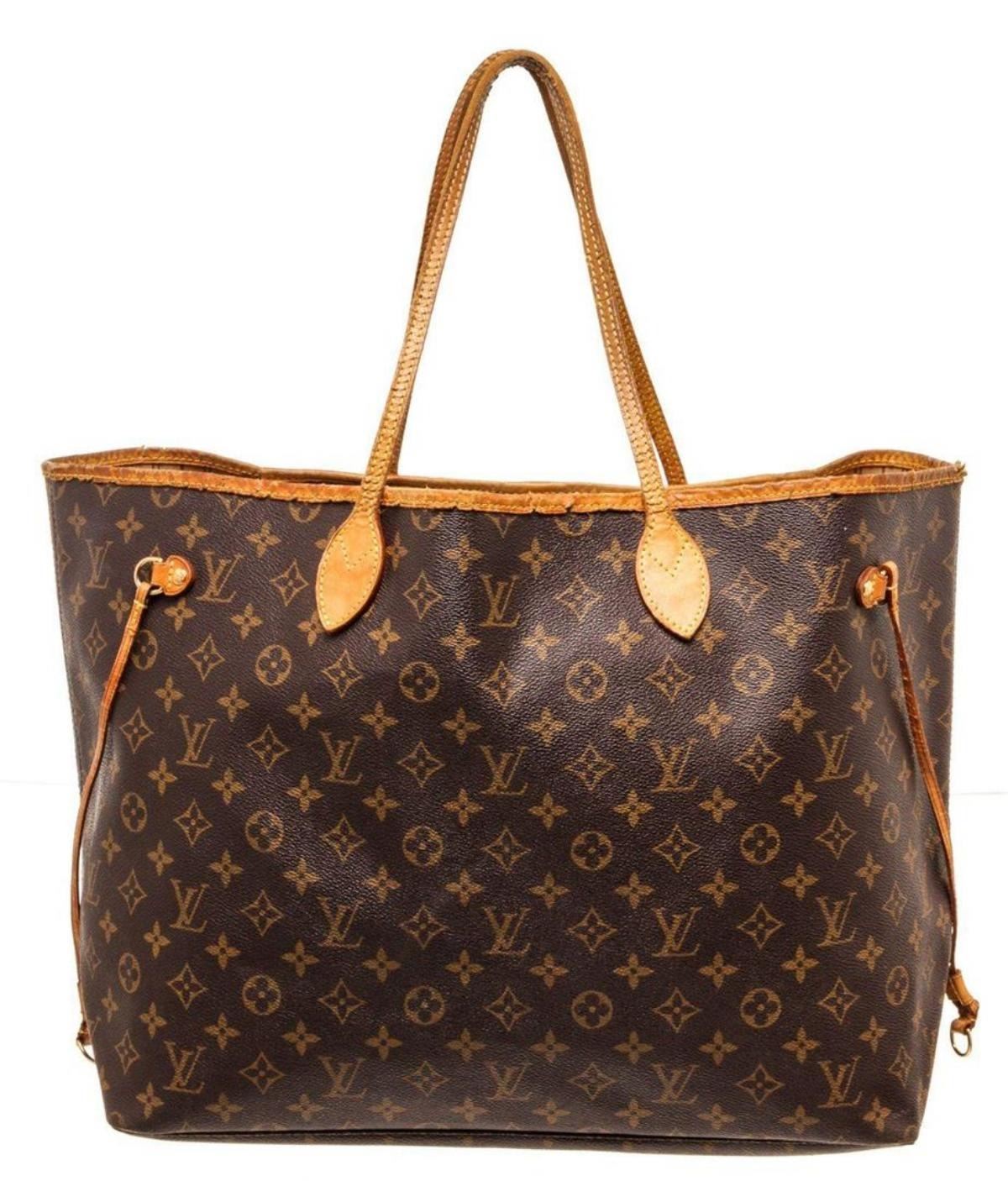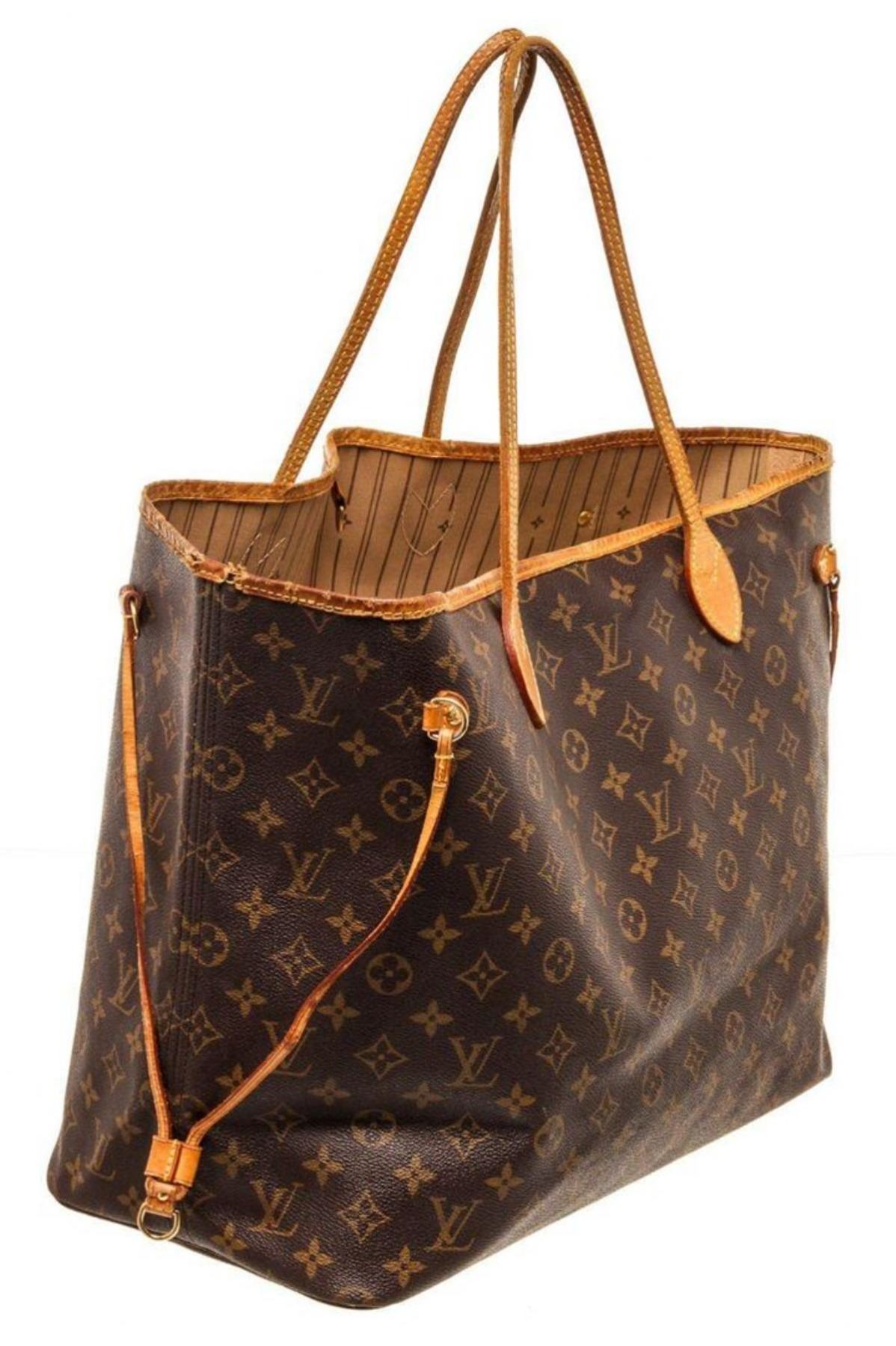 Louis Vuitton Brown Monogram Canvas Neverfull GM Tote Bag with monogram canvas, gold-tone hardware, trim tan vachetta leather, interior zip pocket, dual top handle, shoulder strap and snap closure.