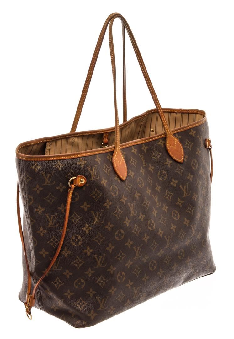 Louis Vuitton Brown Monogram Canvas Neverfull GM Tote Bag. All available information is listed in the description and shown in the photos. Louis Vuitton Brown Monogram Canvas Neverfull GM Tote Bag with brown coated canvas, brass hardware, dual shoulder straps, canvas lining & single interior pocket, clasp closure at top. Height: 12.5" Width: 15.5" Depth: 8", Shoulder Strap Drop: 8.25" / 31.75 x 39.37 x 20.32 Cm