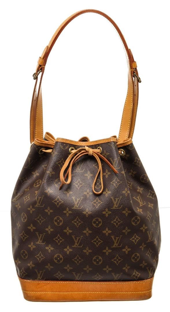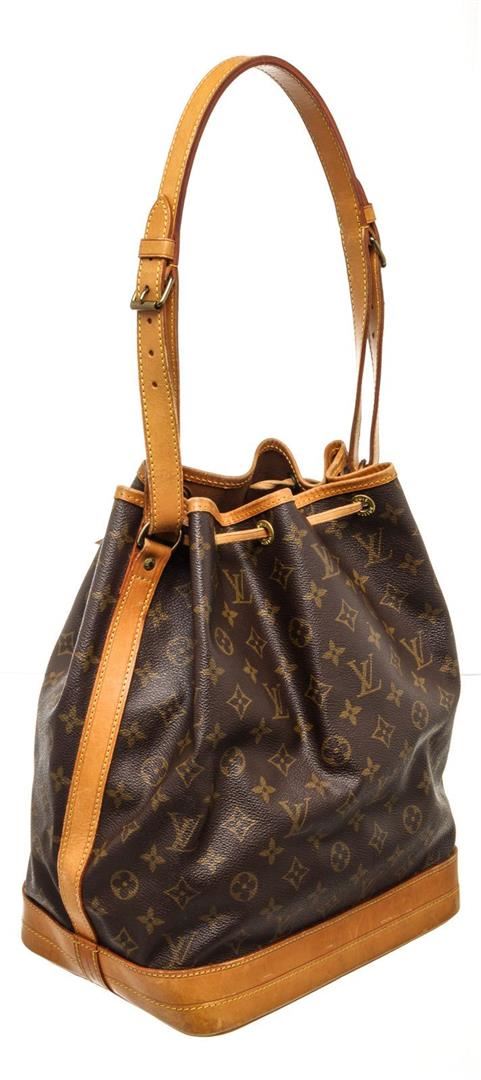 Louis Vuitton Brown Monogram Canvas Noe GM Bucket Bag with Monogram Canvas, gold-tone hardware, shoulder adjustable strap and drawstring closure.