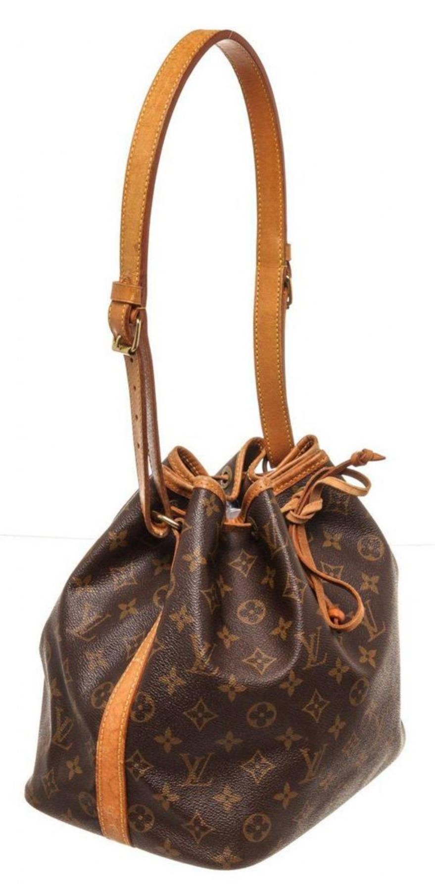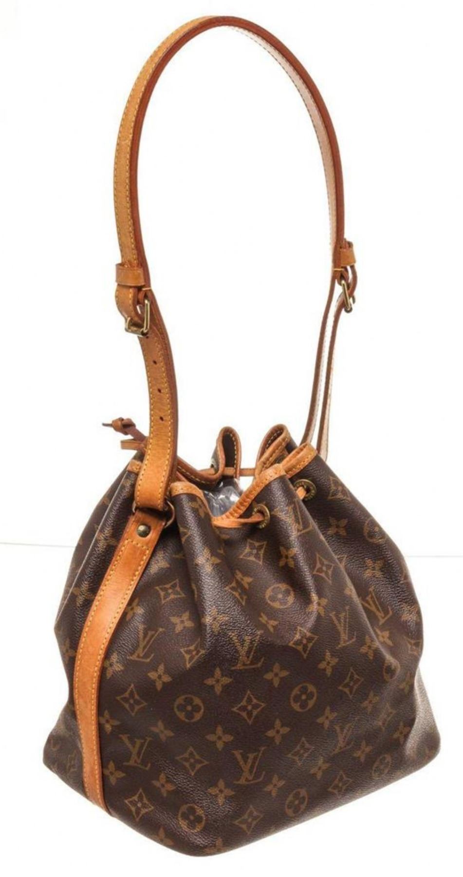 Louis Vuitton Brown Monogram Canvas Noe PM Bucket Bag with material Monogram Canvas, gold-tone hardware, shoulder adjustable strap and drawstring closure.
