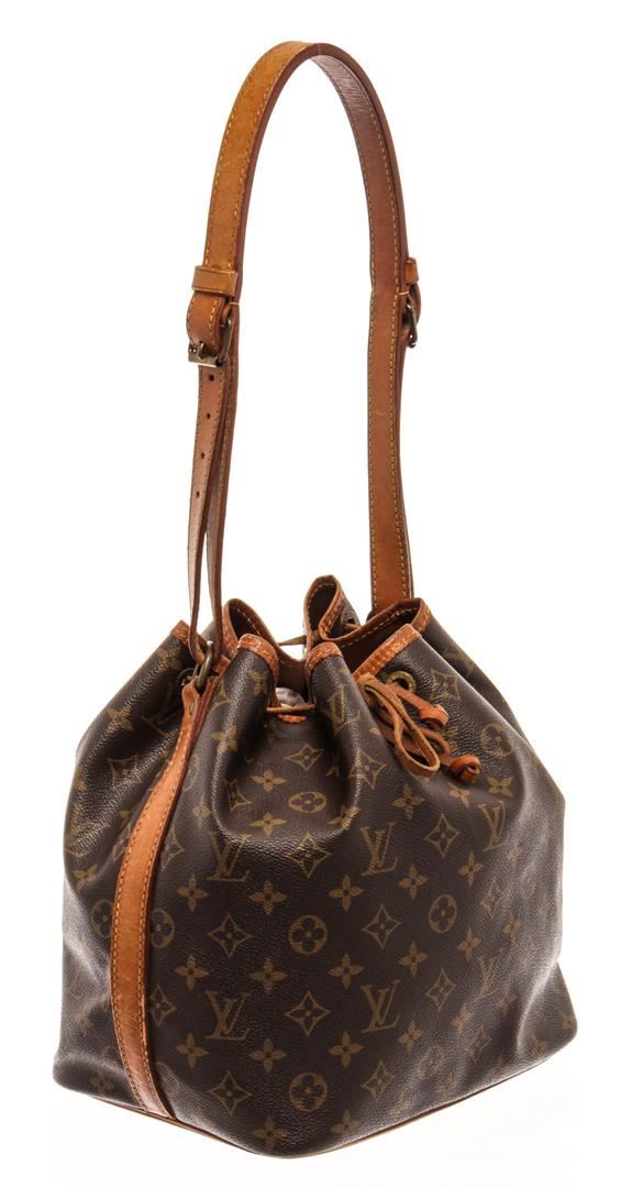 Louis Vuitton Brown Monogram Canvas Noe PM Bucket Bag. All available information is listed in the description and shown in the photos. Louis Vuitton Brown Monogram Canvas Noe PM Bucket Bag with brown coated canvas, brass hardware, single adjustable shoulder strap, canvas lining, drawstring closure at front. Height: 10" Width: 9.5" Depth: 6.75", Shoulder Strap Drop: 9.25-12" / 25.4 x 24.13 x 17.14 Cm
