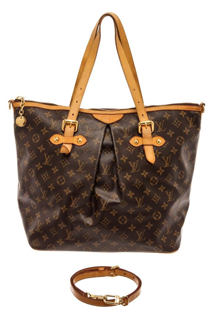 Louis Vuitton Brown Monogram Canvas Palermo GM Shoulder Bag. All available information is listed in the description and shown in the photos. Louis Vuitton Brown Monogram Canvas Palermo GM Shoulder Bag with brown coated canvas, brass hardware, dual adjustable shoulder straps, leather trim embellishment, canvas lining & three interior pockets, zip closure at top. Height: 13" Width: 14" Depth: 7.5", Shoulder Strap Drop: 10" / 33.02 x 35.56 x 19.05 Cm