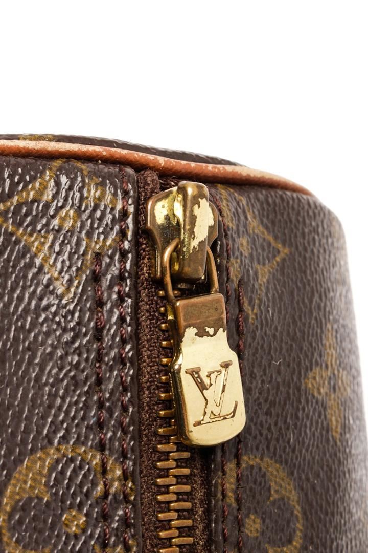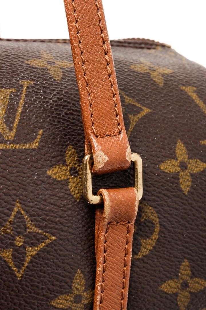 Louis Vuitton Brown Monogram Canvas Papillon 26 Top Handle Bag. All available information is listed in the description and shown in the photos. Louis Vuitton Brown Monogram Canvas Papillon 26 Top Handle Bag with this handbag features, brass hardware, leather trim, dual flat handles, leather trim embellishment, leather lining, zip closure at top. Height: 5.25" Width: 10.25" Depth: 5.25", Handle Drop: 6.5" / 13.33 x 26.03 x 13.33 Cm