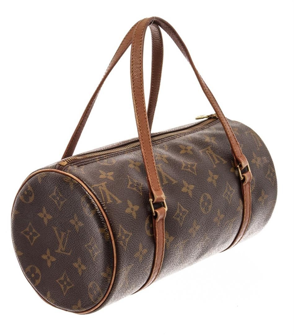 Louis Vuitton Brown Monogram Canvas Papillon 26 Top Handle Bag. All available information is listed in the description and shown in the photos. Louis Vuitton Brown Monogram Canvas Papillon 26 Top Handle Bag with this handbag features, brass hardware, leather trim, dual flat handles, leather trim embellishment, leather lining, zip closure at top. Height: 5.25" Width: 10.25" Depth: 5.25", Handle Drop: 6.5" / 13.33 x 26.03 x 13.33 Cm