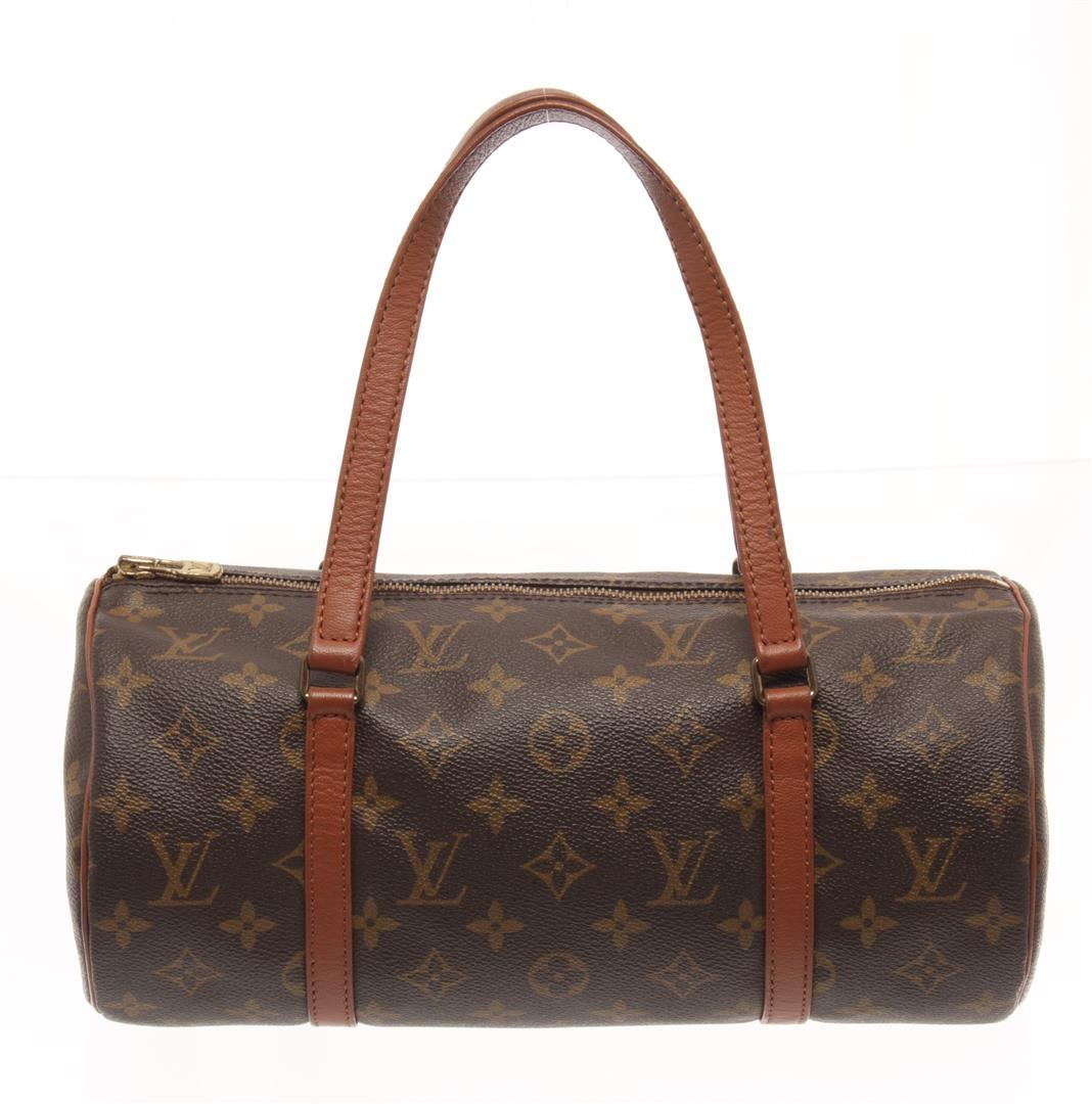 Louis Vuitton Brown Monogram Canvas Papillon 30 Bag. All available information is listed in the description and shown in the photos. louis vuitton brown monogram canvas papillon 30 bag with vintage, brown coated canvas, monogram, brass hardware, dual shoulder straps, canvas lining, zip closure at top. Depth 5.9 in, Height 5.9 in, Width 11.8 in, Handle 6.7 in / Depth 15 cm, Handle 17 cm, Height 15 cm, Width 30 cm