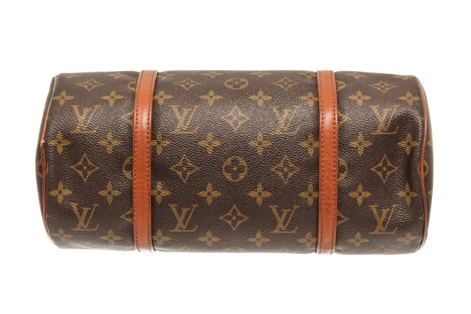 One Louis Vuitton Brown Monogram Canvas Papillon Bag. Item is sold AS-IS. All available information is listed in the description and shown in the photo. Louis Vuitton Brown Monogram Canvas Papillon Bag with top handle, leather lining, gold tone hardware and zipper closure. Height: 5.7" Width: 11.8" Depth: 5.7" , Handle Drop: 6.3" / 14.47 x 29.97 x 14.47 Cm