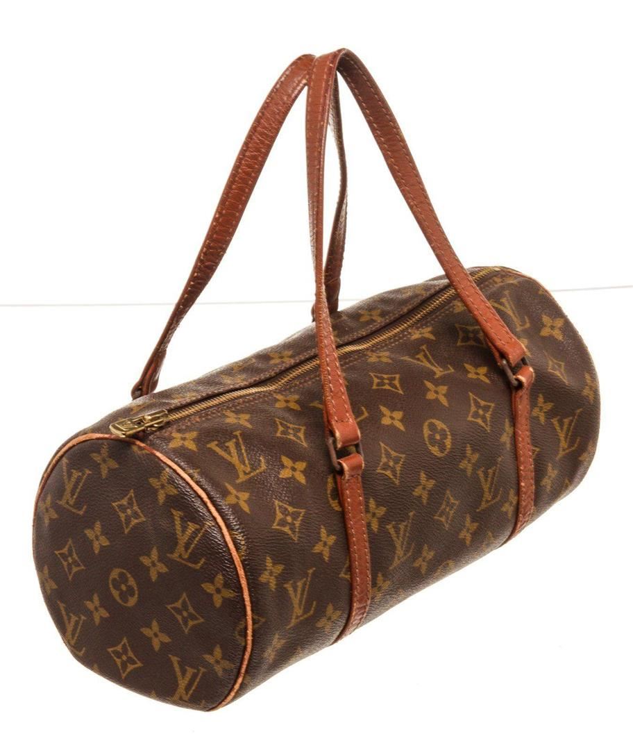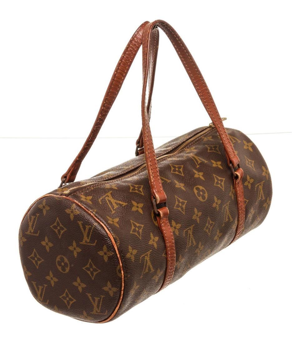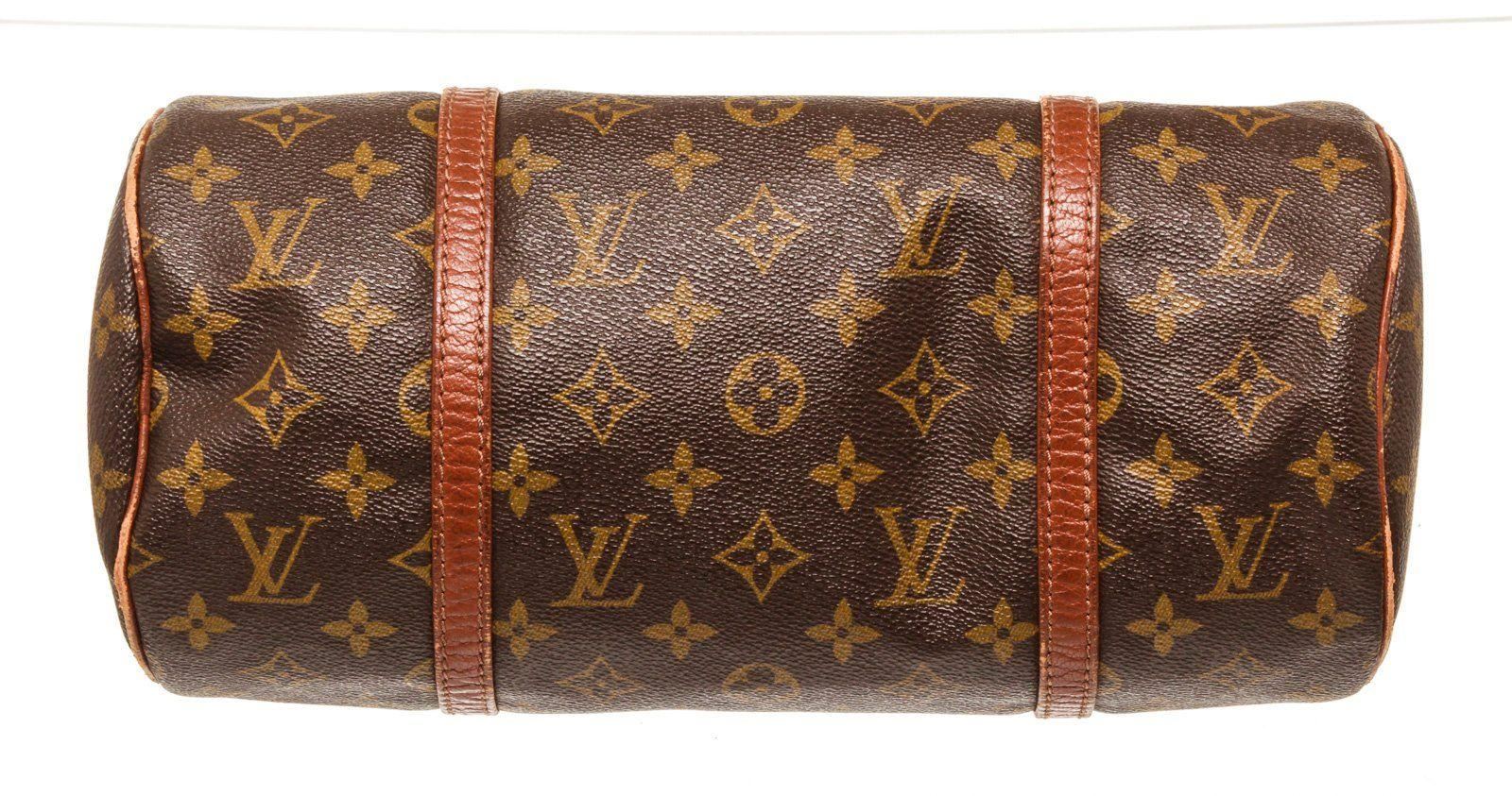 Louis Vuitton Brown Monogram Canvas Papillon Handbag with material monogram canvas, gold-tone hardware, trim tan vachetta leather, shoulder strap and zipper closure.