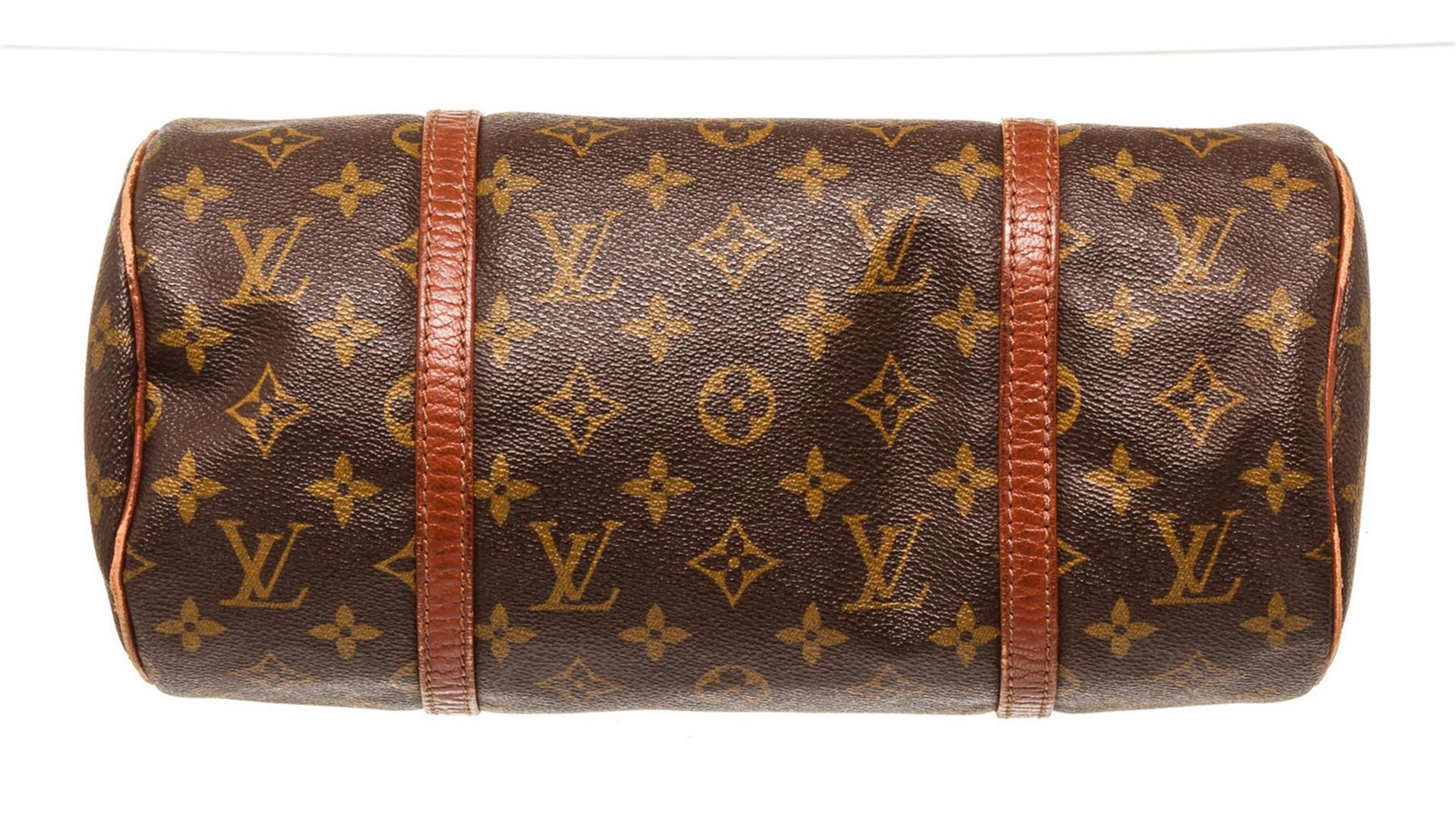 Louis Vuitton Brown Monogram Canvas Papillon Handbag with material monogram canvas, gold-tone hardware, trim tan vachetta leather, shoulder strap and zipper closure.