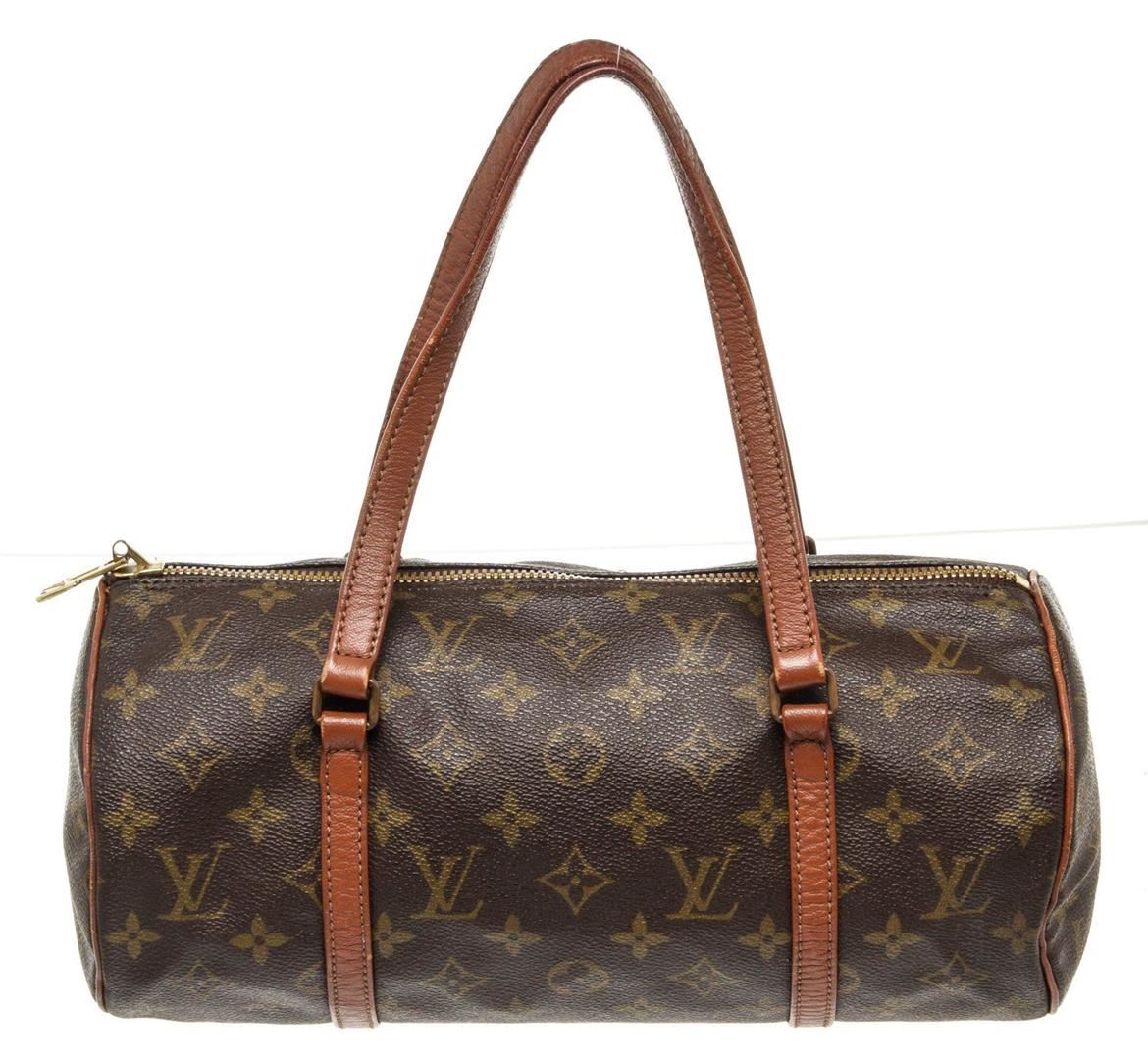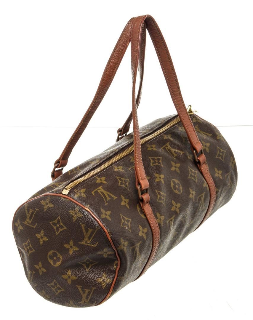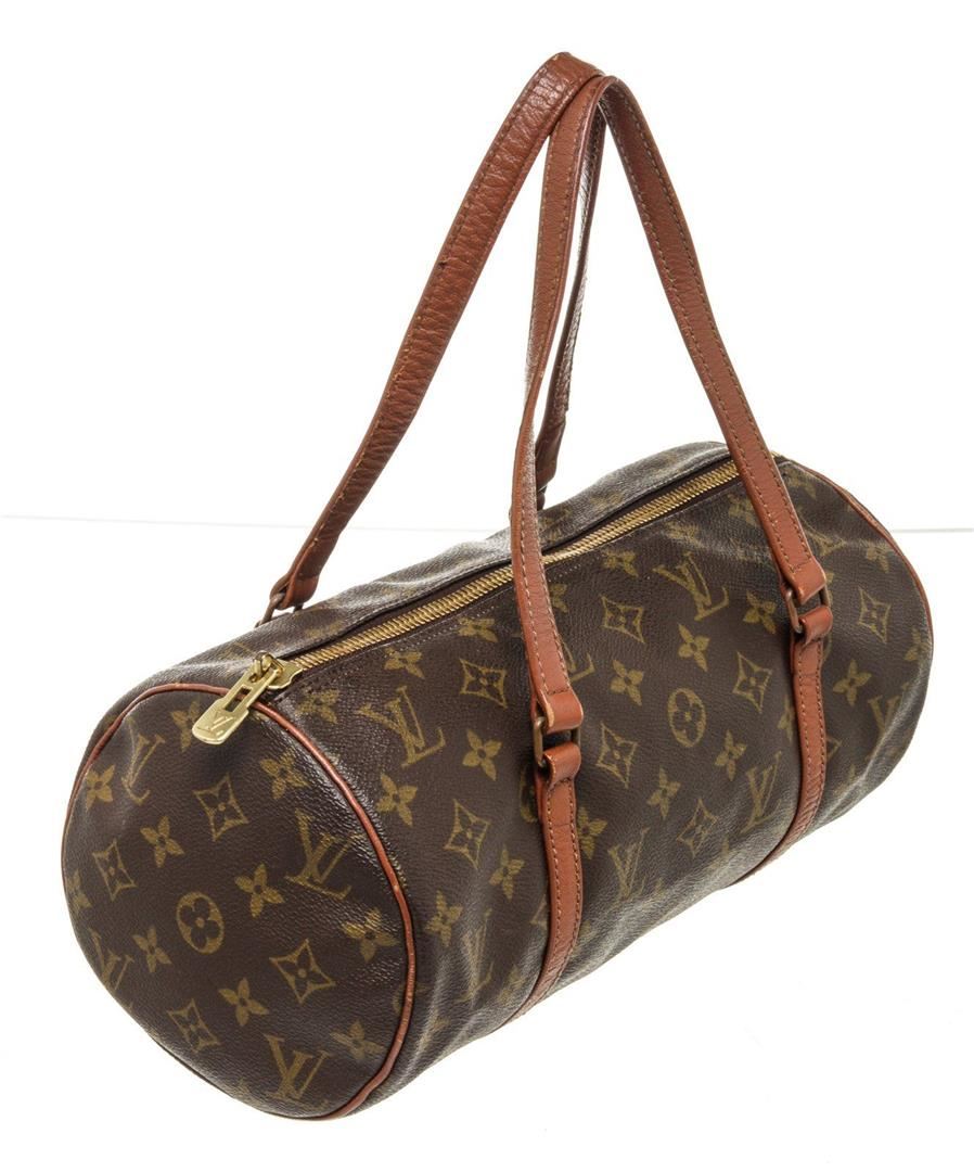 Louis Vuitton Brown Monogram Canvas Papillon 30cm Handbag with monogram canvas, gold-tone hardware, trim tan vachetta leather, shoulder strap and zipper closure.