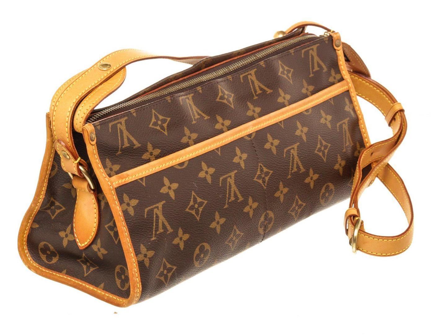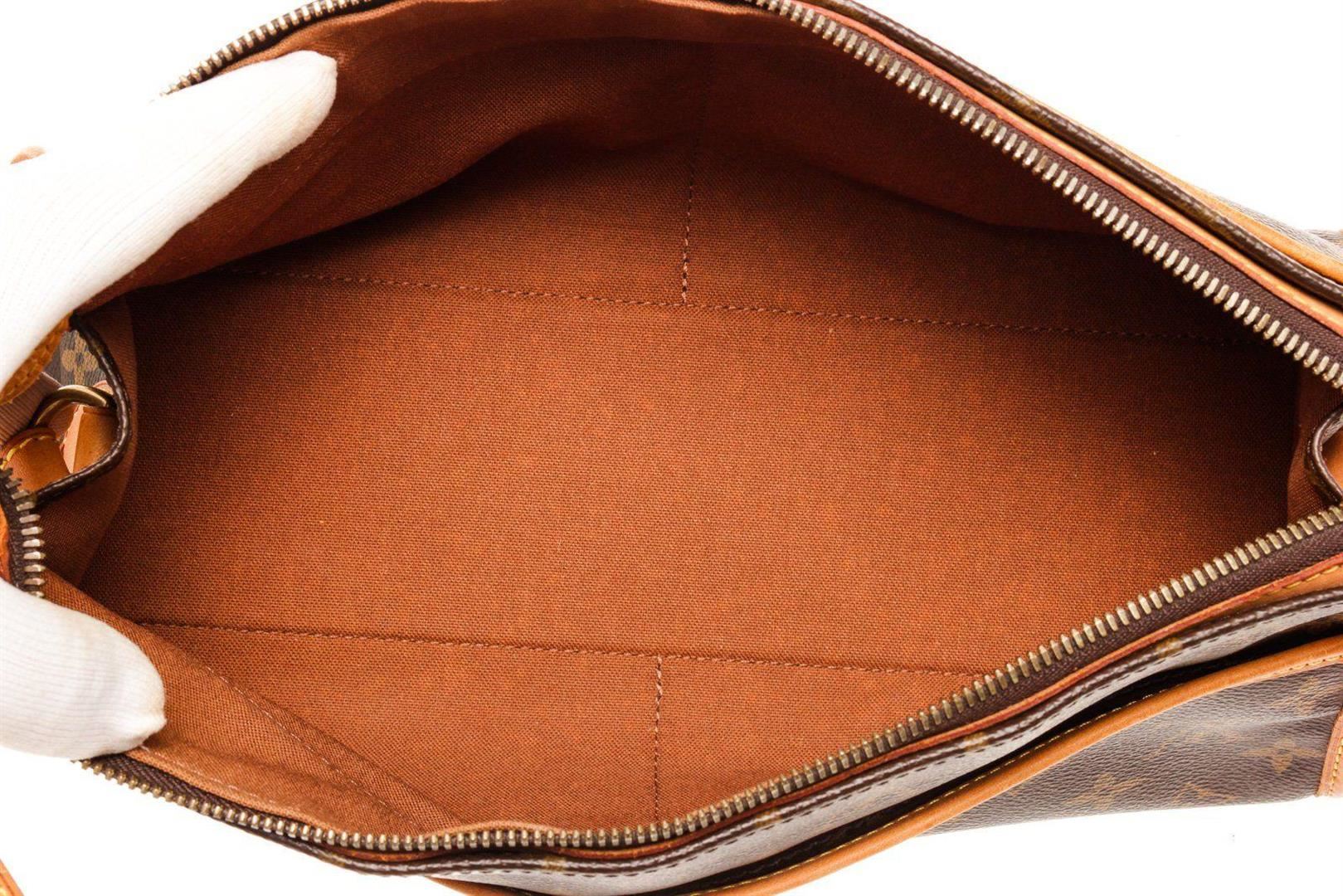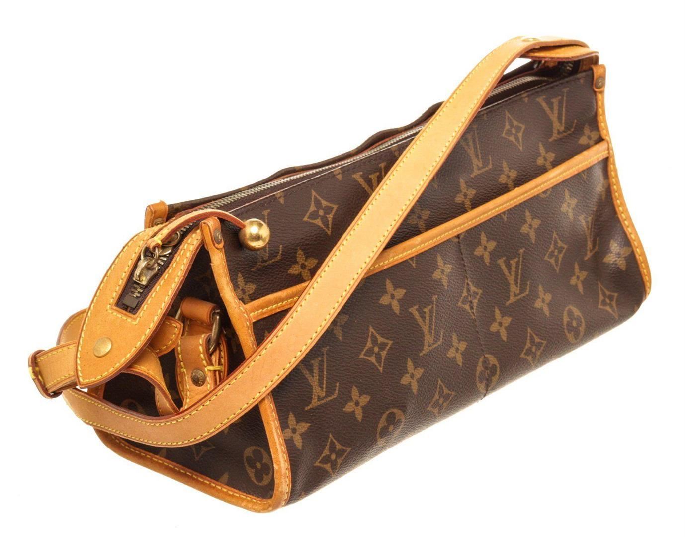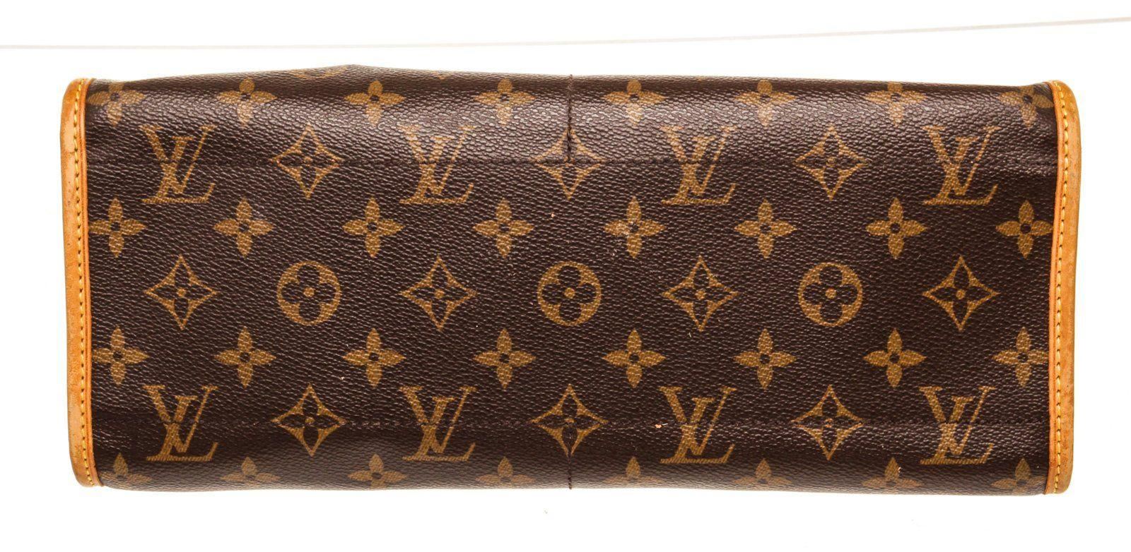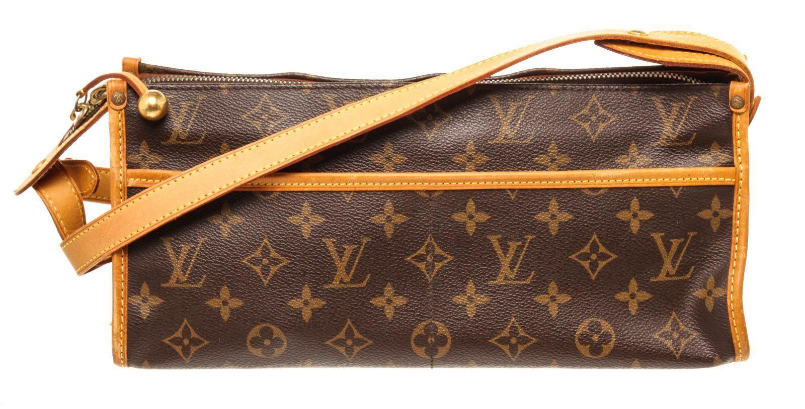 Louis Vuitton Brown Monogram Canvas Popincourt Long Shoulder Bag with monogram canvas, gold-tone hardware, trim tan vachetta leather, canvas lining, shoulder strap and zipper closure.