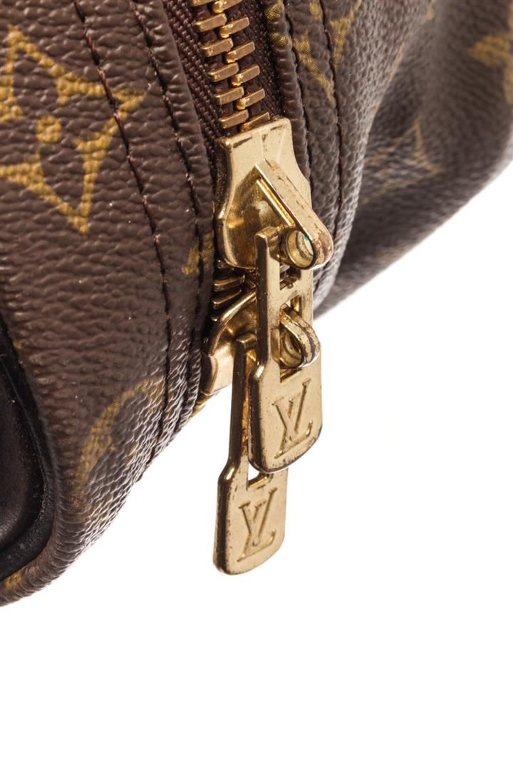 Louis Vuitton Brown Monogram Canvas Porte Documents Voyage Briefcase. All available information is listed in the description and shown in the photos. Louis Vuitton Brown Monogram Canva Porte Documents Voyage Briefcase with leather trim, two rolled top handles, top zip fastening, main compartment, internal slip pocket, adjustable detachable shoulder strap. Depth 2.4 in, Height 10.6 in, Strap 53.1 in, Width 13.8 in / Depth 6 cm, Height 27 cm, Strap 135 cm, Width 35 cm