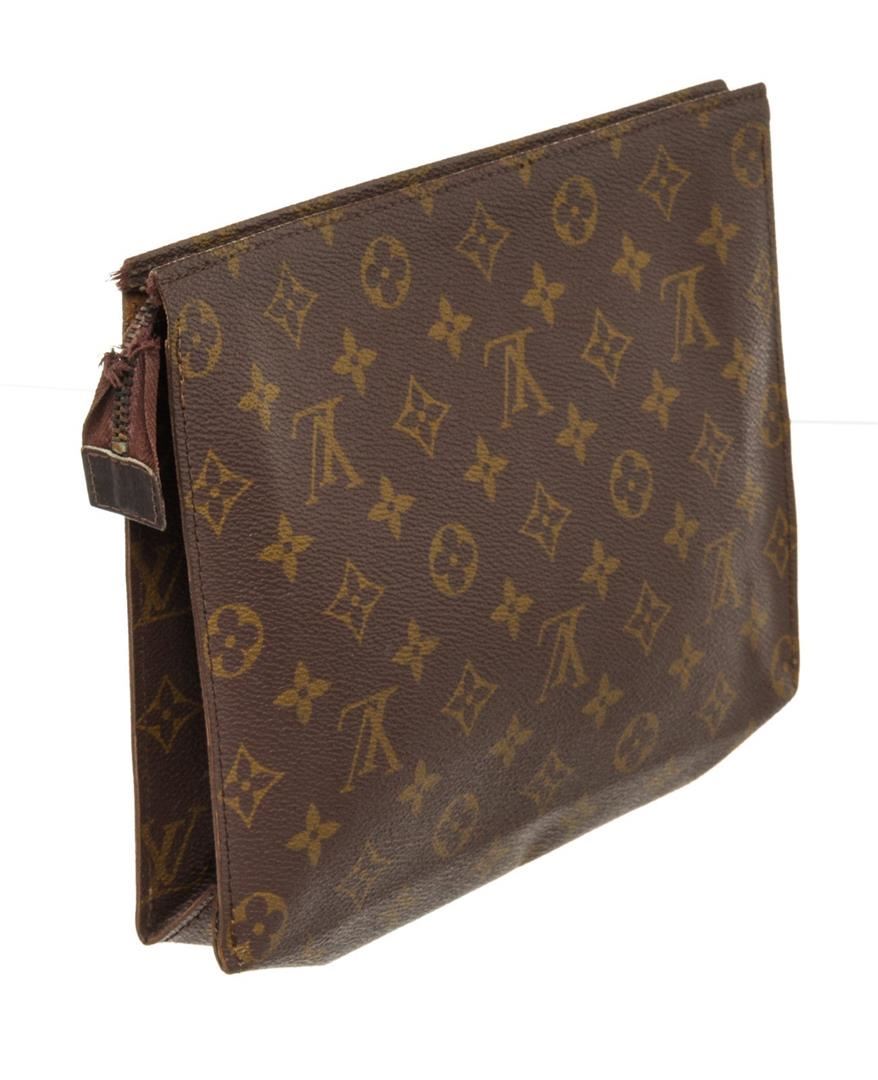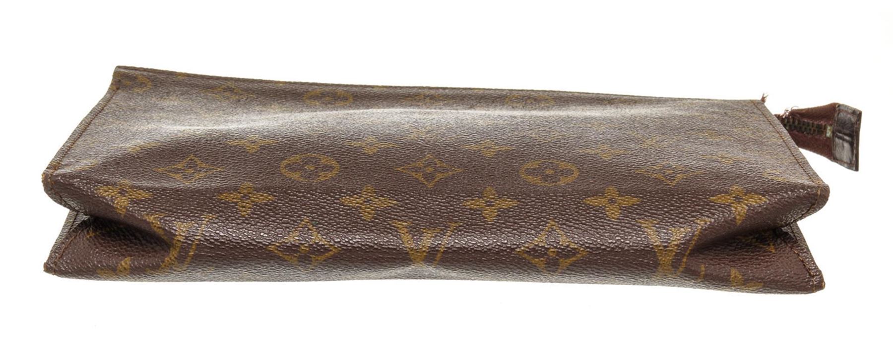 Louis Vuitton Brown Monogram Canvas Pouch Bag with Monogram canvas, brass hardware, rust Alcantara lining and zip closure at top.