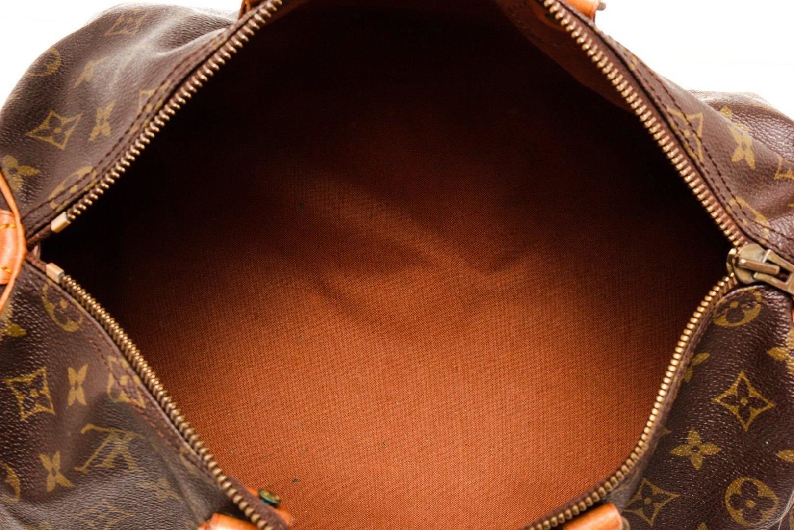 Louis Vuitton Brown Monogram Canvas Reporter PM Crossbody Bag with monogram canvas, gold-tone hardware, tan vachetta leather trim, exterior flap pockets, interior zip pockets, canvas lining, leather shoulder strap, and zip closure.