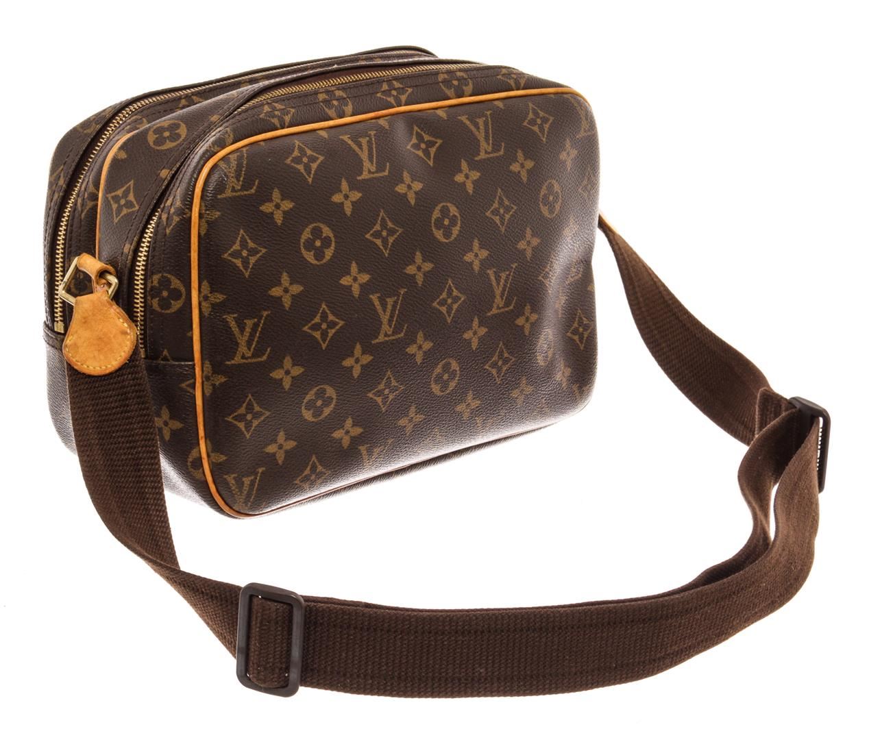 Louis Vuitton Brown Monogram Canvas Reporter PM Messenger Bag. All available information is listed in the description and shown in the photos. Louis Vuitton Brown Monogram Canvas Reporter PM Messenger Bag with brown coated canvas, brass hardware, single adjustable shoulder strap, single exterior pocket, canvas lining & single interior pocket, zip closure at top. Height: 9" Width: 11" Depth: 4.5", Shoulder Strap Drop: 22.5" / 22.86 x 27.94 x 11.43 Cm