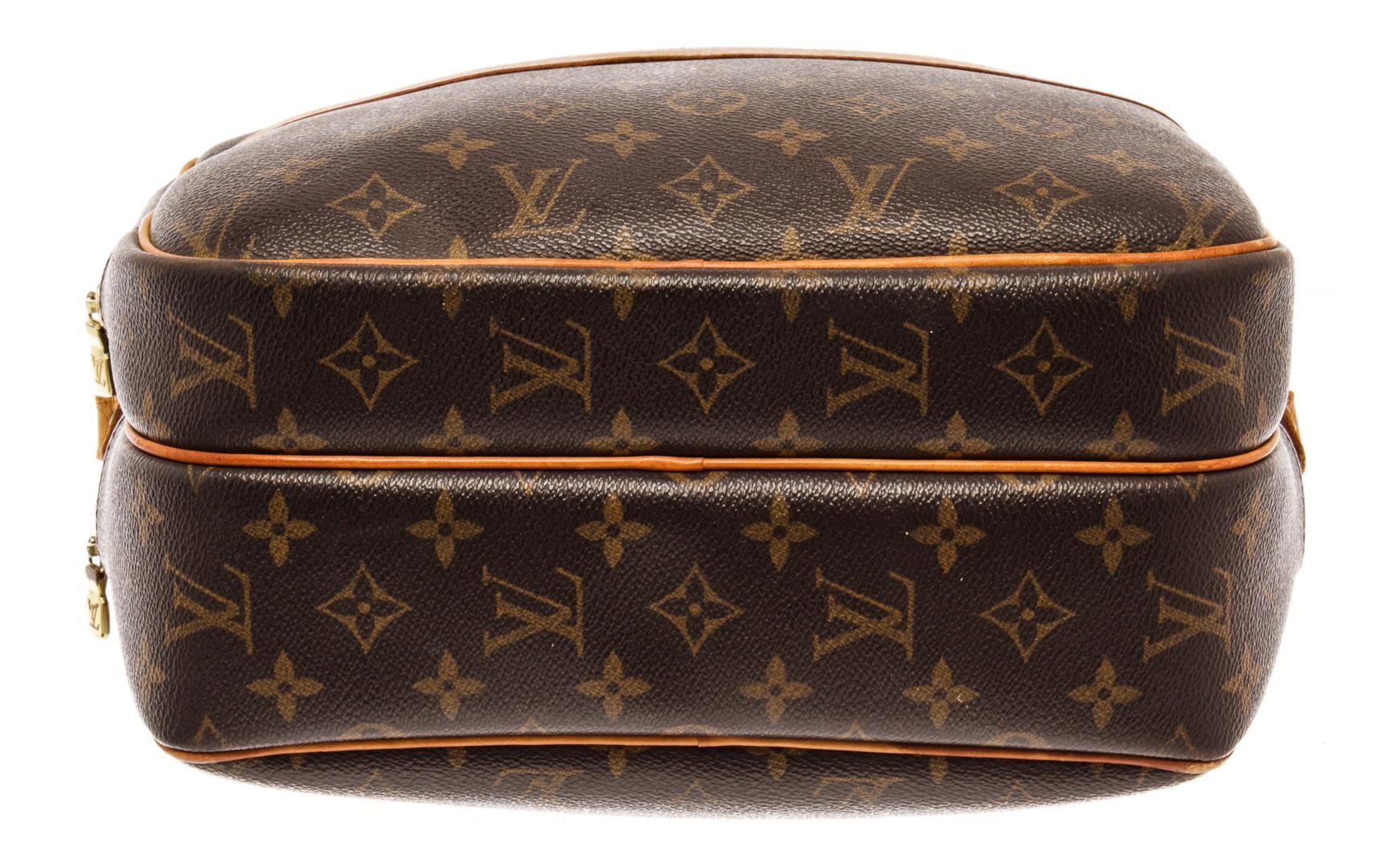 Louis Vuitton Brown Monogram Canvas Reporter PM Messenger Bag. All available information is listed in the description and shown in the photos. Louis Vuitton Brown Monogram Canvas Reporter PM Messenger Bag with brown coated canvas, brass hardware, single adjustable shoulder strap, leather trim, single exterior pocket, canvas lining & single interior pocket, double compartments with top zip closures. Height: 9" Width: 11" Depth: 4.5", Shoulder Strap Drop: 22.5" / 22.86 x 27.94 x 11.43 Cm