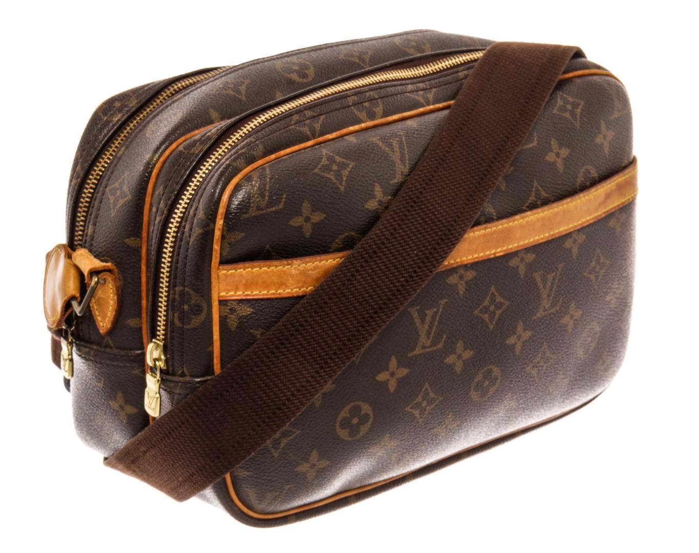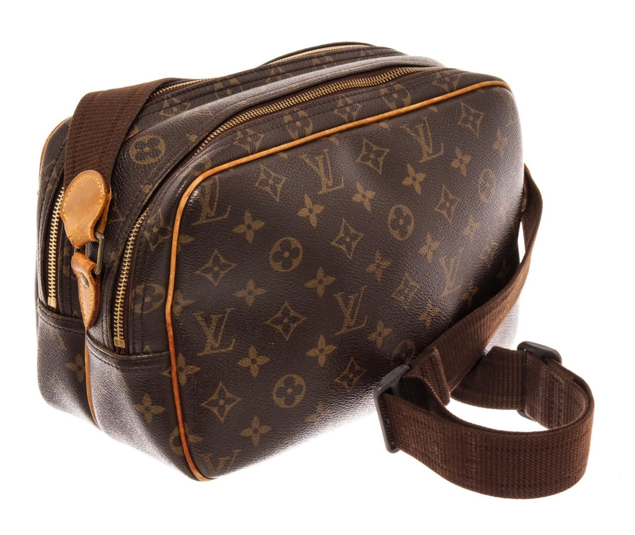Louis Vuitton Brown Monogram Canvas Reporter PM Messenger Bag. All available information is listed in the description and shown in the photos. Louis Vuitton Brown Monogram Canvas Reporter PM Messenger Bag with brown coated canvas, brass hardware, single adjustable shoulder strap, leather trim, single exterior pocket, canvas lining & single interior pocket, double compartments with top zip closures. Height: 9" Width: 11" Depth: 4.5", Shoulder Strap Drop: 22.5" / 22.86 x 27.94 x 11.43 Cm