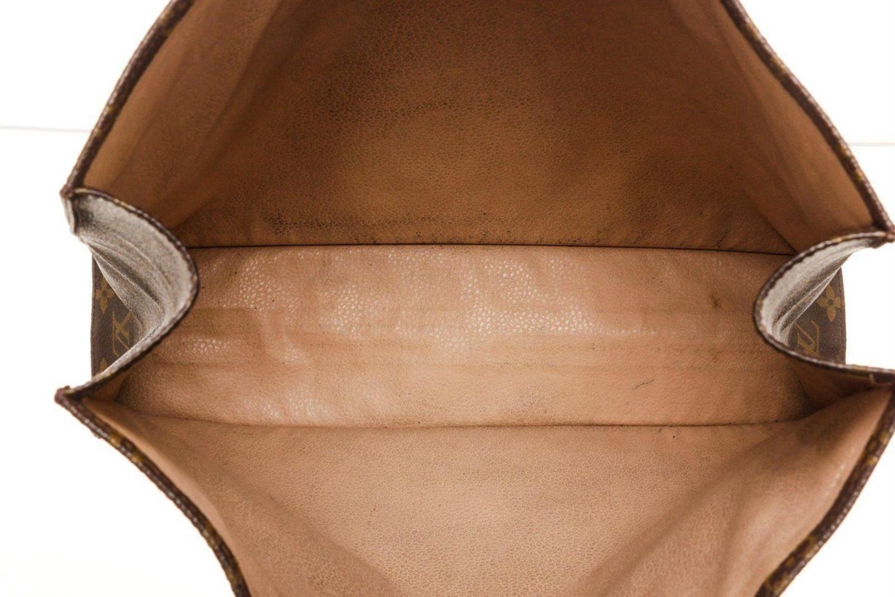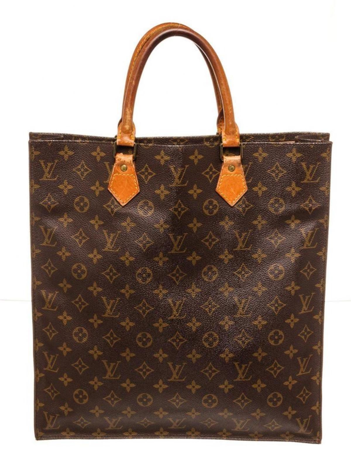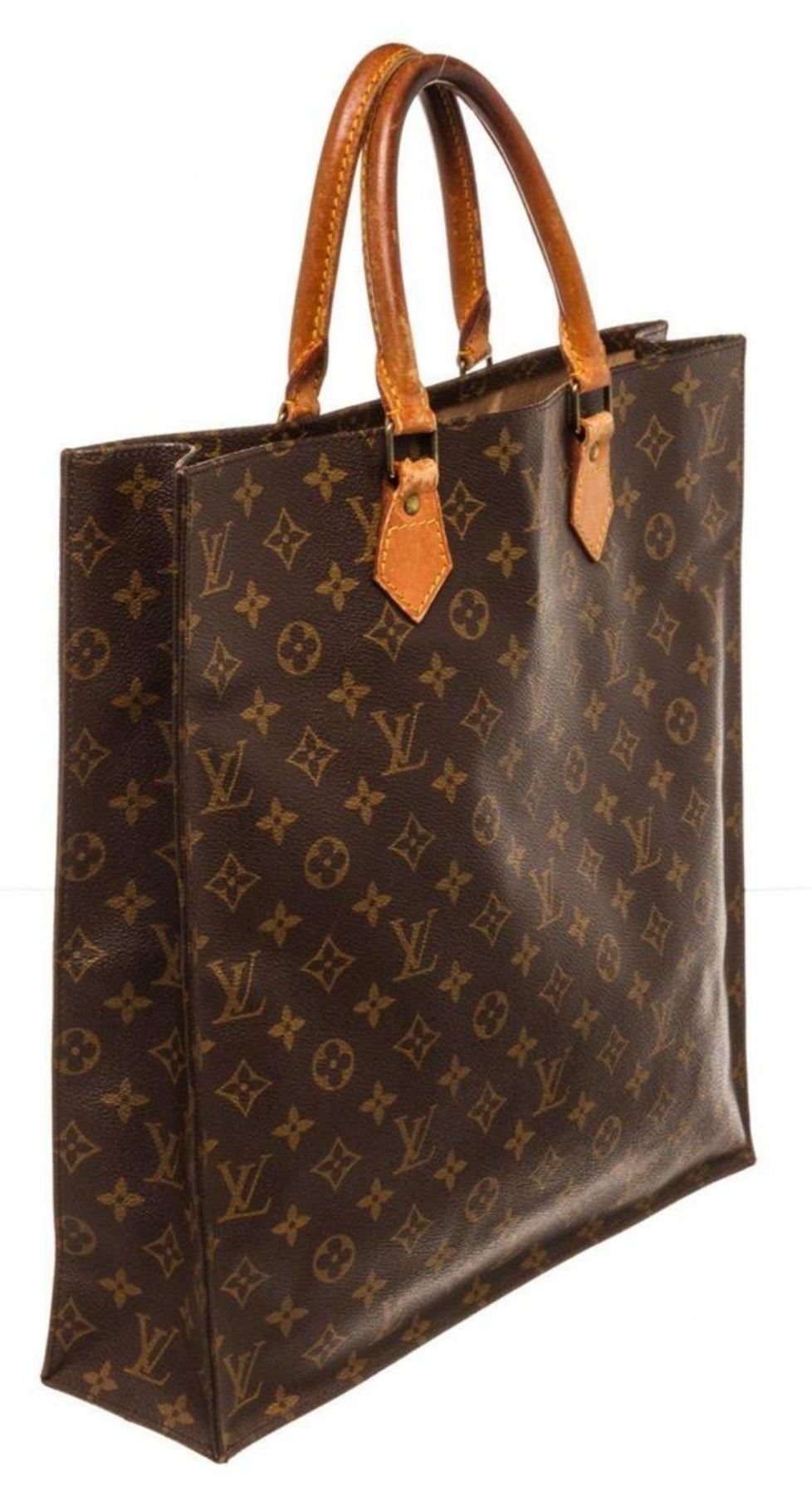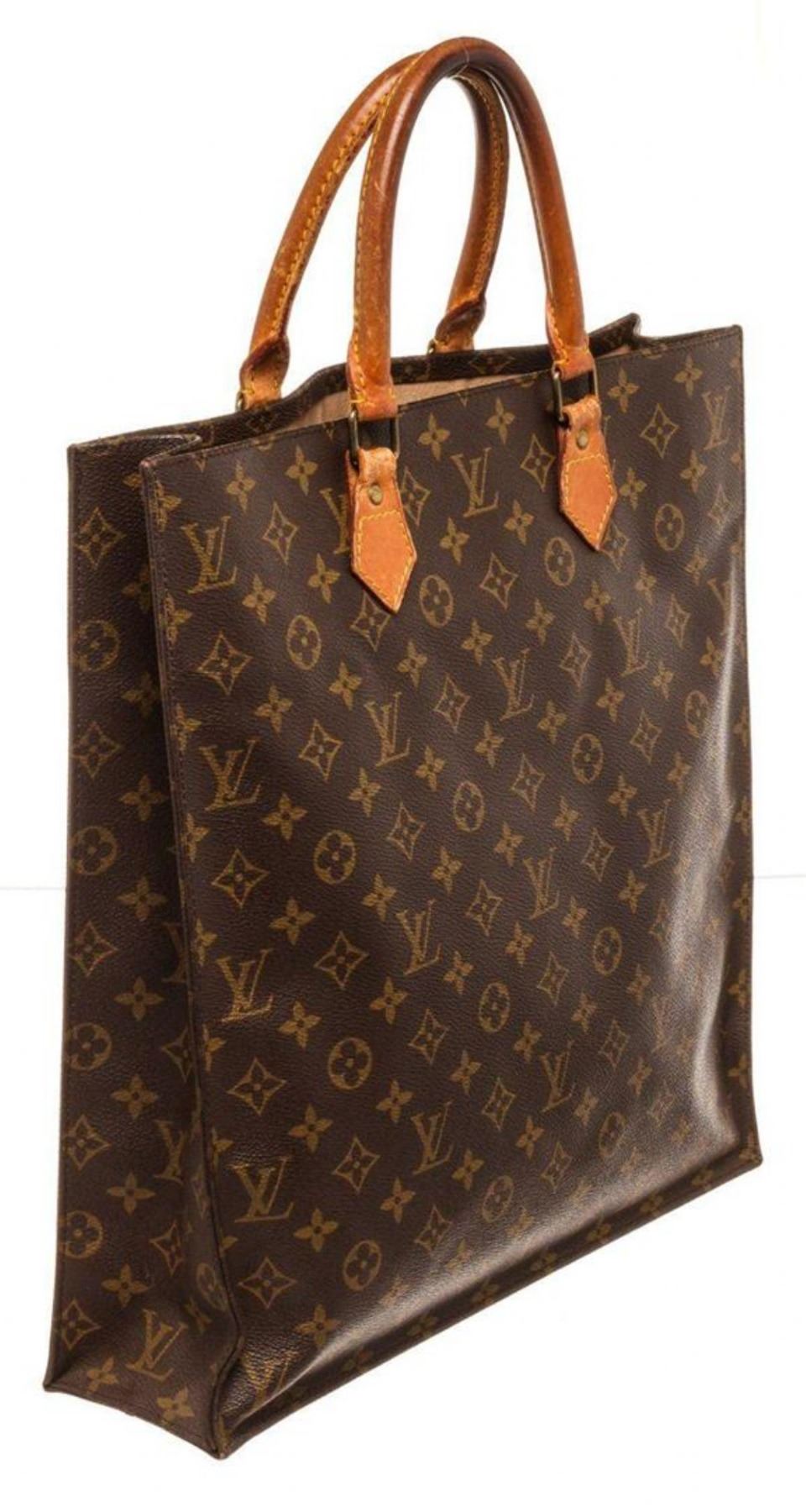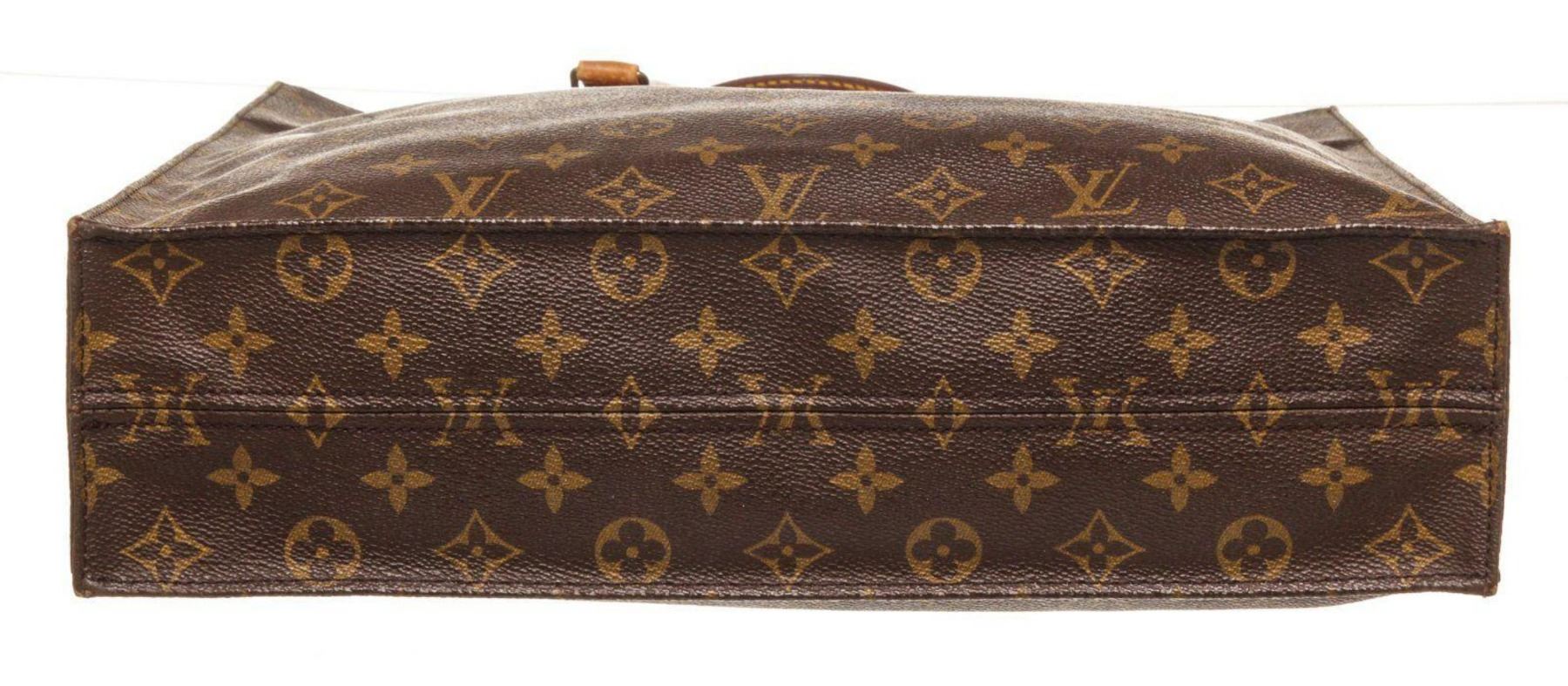 Louis Vuitton Brown Monogram Canvas Sac Plat Tote Bag with gold-tone hardware, dual rolled top handles, chocolate leather trim, crimson alcantara lining, single zip pocket at interior wall and zip closure.