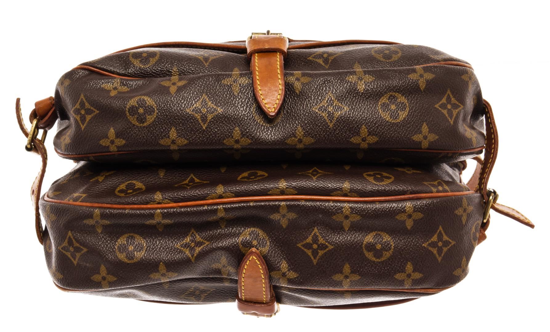 Louis Vuitton Brown Monogram Canvas Saumur 30 Messenger Bag. All available information is listed in the description and shown in the photos. Louis Vuitton Brown Monogram Canvas Saumur 30 Messenger Bag with features monogram canvas. interior compartments have large pockets for your accessories and laptop. dual front compartments in a saddle bag like style, with buckle closures. brass hardware and vachetta leather trim, opens up to two interior areas with slip pocket. lined in brown textile fabric, and holds together at the sides with adjustable buckles. adjustable long shoulder strap with shoulder guard. 10.5"L x 4"W x 8.5"H, Strap drop: 26" / 26.67 x 10.16 x 21.59 Cm