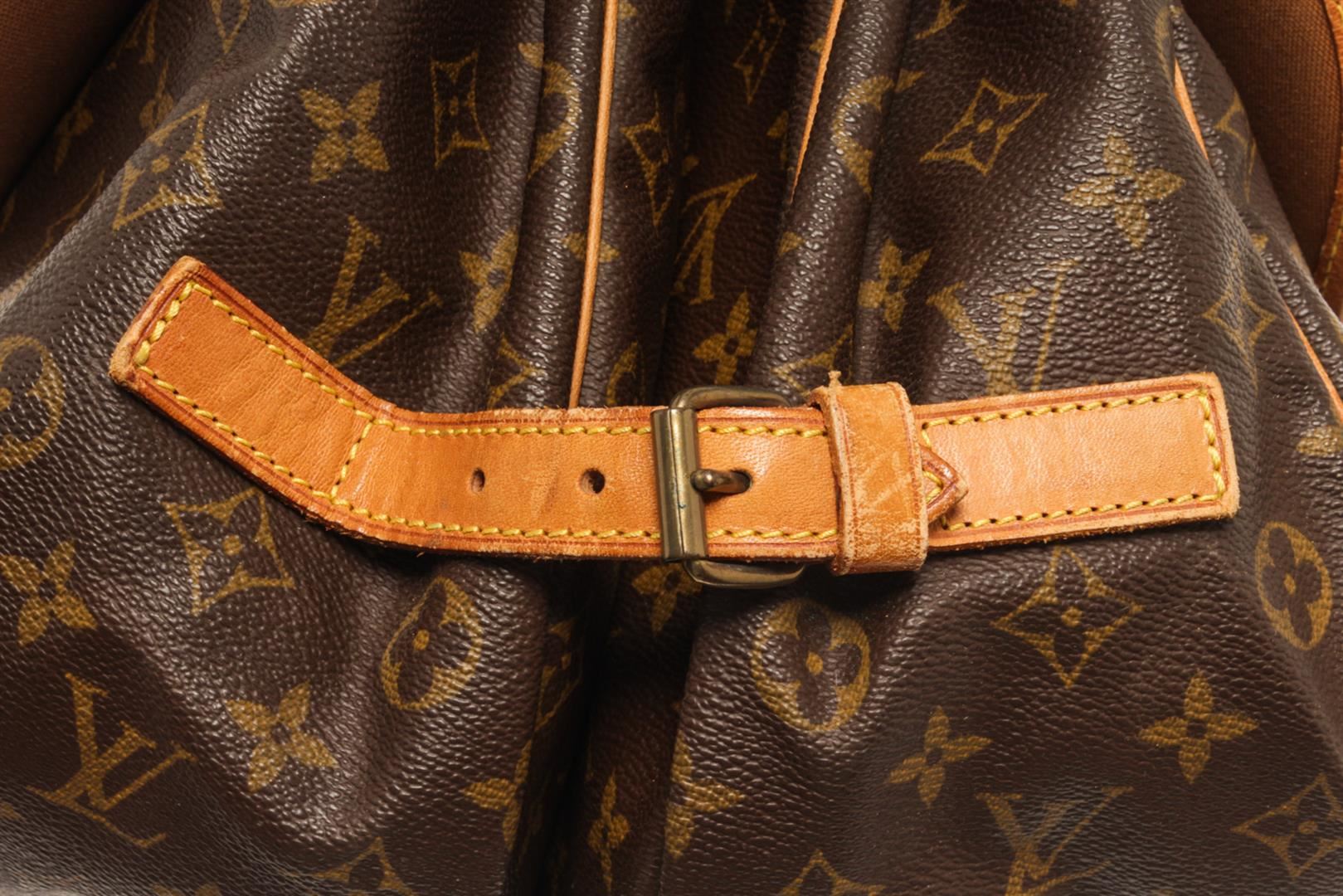One Louis Vuitton Brown Monogram Canvas Saumur 30 Shoulder Bag. Item is sold AS-IS. All available information is listed in the description and shown in the photo. louis vuitton brown monogram canvas saumur 30 shoulder bag with gold hardware, leather trims Height: 8 in (20.32 cm), Width: 11 in (27.94 cm), Depth: 5 in (12.7 cm)