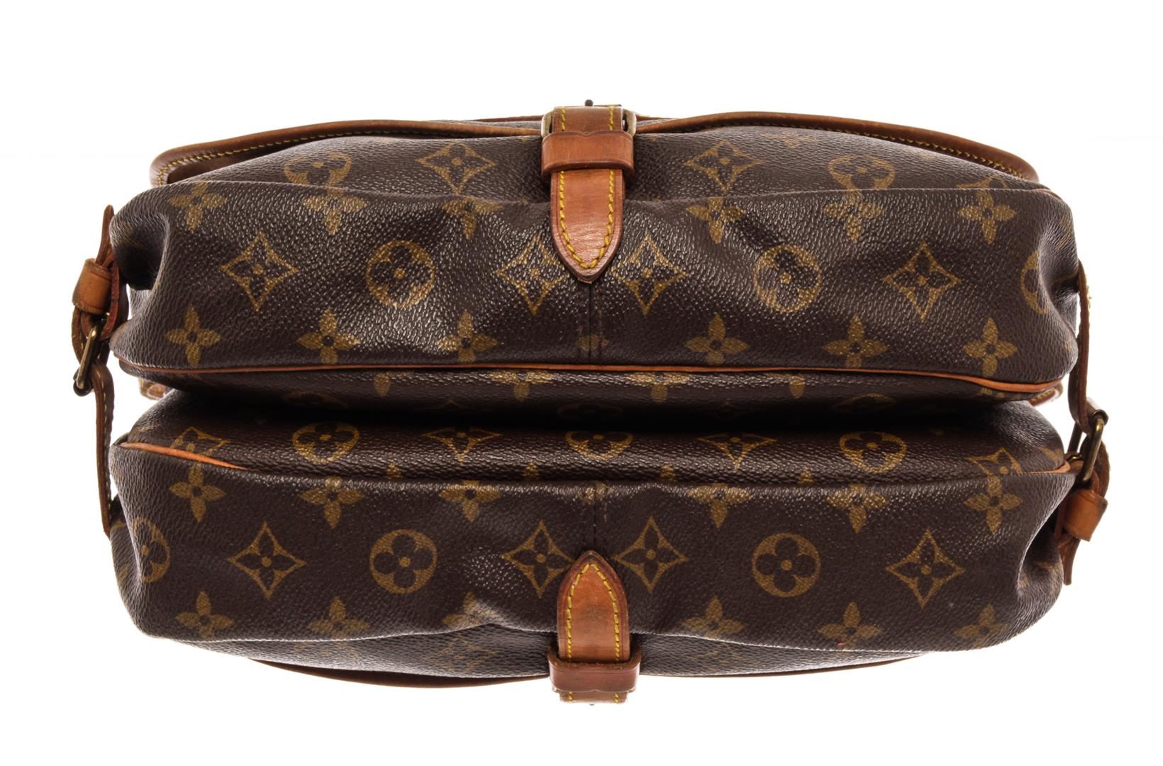 Louis Vuitton Brown Monogram Canvas Saumur 30cm Shoulder Bag. All available information is listed in the description and shown in the photos. Louis Vuitton Brown Monogram Canvas Saumur 30cm Shoulder Bag with brown coated canvas, brass hardware, leather trim, single adjustable shoulder strap, leather trim embellishment, canvas lining & three interior pockets, flap & buckle closures at front. Height: 10" Width: 12" Depth: 9.25", Shoulder Strap Drop: 19.5" / 25.4 x 30.48 x 23.49 Cm