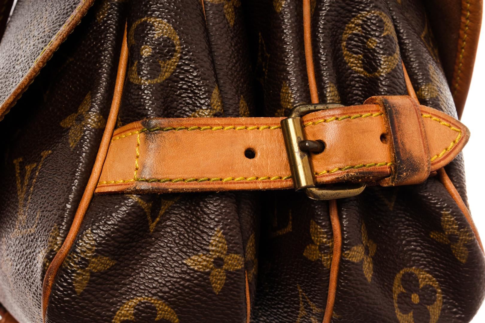 Louis Vuitton Brown Monogram Canvas Saumur 30cm Shoulder Bag. All available information is listed in the description and shown in the photos. Louis Vuitton Brown Monogram Canvas Saumur 30cm Shoulder Bag with brown coated canvas, brass hardware, leather trim, single adjustable shoulder strap, leather trim embellishment, canvas lining & three interior pockets, flap & buckle closures at front. Height: 10" Width: 12" Depth: 9.25", Shoulder Strap Drop: 19.5" / 25.4 x 30.48 x 23.49 Cm
