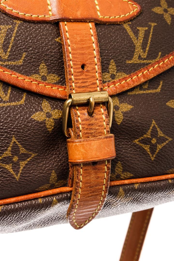 Louis Vuitton Brown Monogram Canvas Saumur 30cm Shoulder Bag. All available information is listed in the description and shown in the photos. Louis Vuitton Brown Monogram Canvas Saumur 30cm Shoulder Bag with brown coated canvas, brass hardware, leather trim, single adjustable shoulder strap, leather trim embellishment, canvas lining & three interior pockets, flap & buckle closures at front. Height: 10" Width: 12" Depth: 9.25", Shoulder Strap Drop: 19.5" / 25.4 x 30.48 x 23.49 Cm