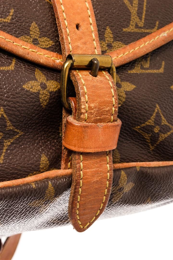 Louis Vuitton Brown Monogram Canvas Saumur 30cm Shoulder Bag. All available information is listed in the description and shown in the photos. Louis Vuitton Brown Monogram Canvas Saumur 30cm Shoulder Bag with brown coated canvas, brass hardware, leather trim, single adjustable shoulder strap, leather trim embellishment, canvas lining & three interior pockets, flap & buckle closures at front. Height: 10" Width: 12" Depth: 9.25", Shoulder Strap Drop: 19.5" / 25.4 x 30.48 x 23.49 Cm