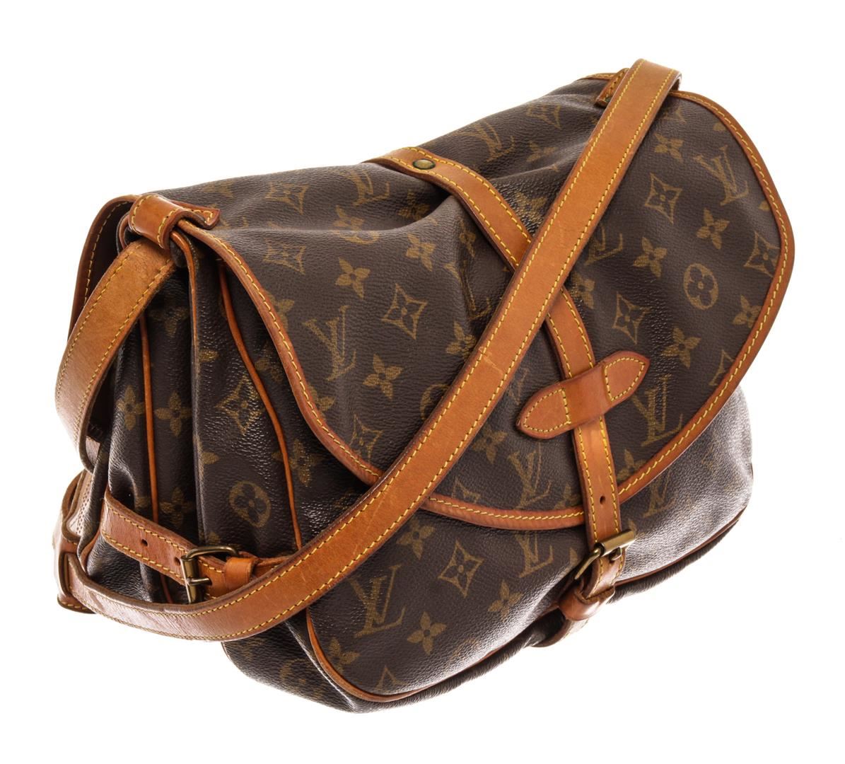 Louis Vuitton Brown Monogram Canvas Saumur 30cm Shoulder Bag. All available information is listed in the description and shown in the photos. Louis Vuitton Brown Monogram Canvas Saumur 30cm Shoulder Bag with brown coated canvas, brass hardware, leather trim, single adjustable shoulder strap, leather trim embellishment, canvas lining & three interior pockets, flap & buckle closures at front. Height: 10" Width: 12" Depth: 9.25", Shoulder Strap Drop: 19.5" / 25.4 x 30.48 x 23.49 Cm