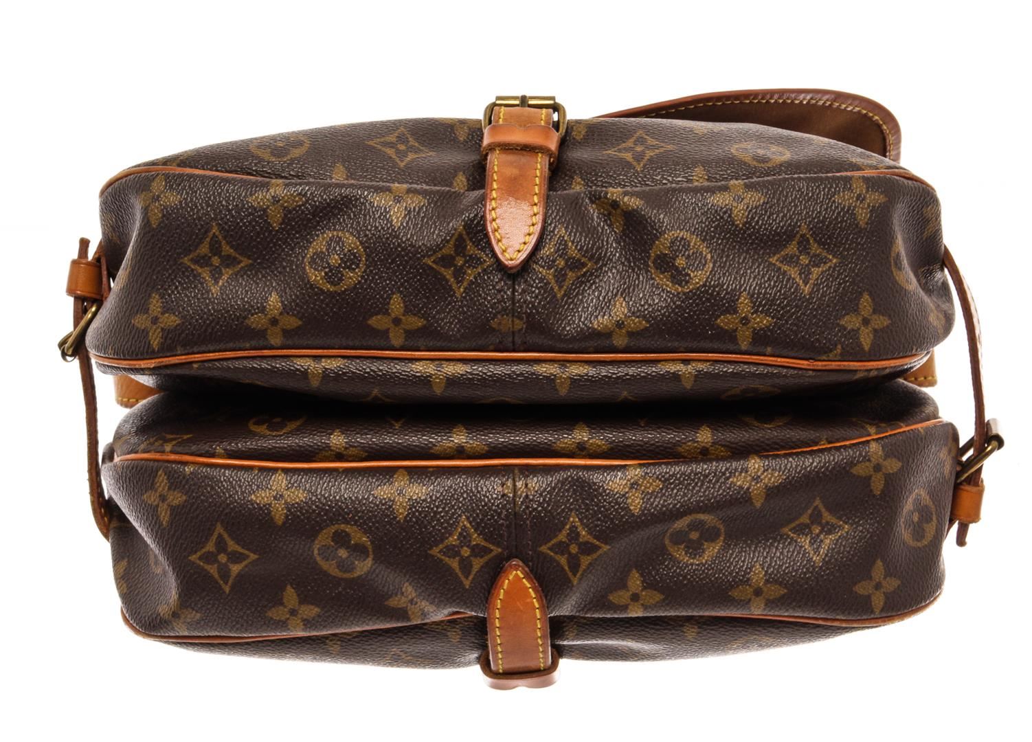 Louis Vuitton Brown Monogram Canvas Saumur 30cm Shoulder Bag. All available information is listed in the description and shown in the photos. Louis Vuitton Brown Monogram Canvas Saumur 30cm Shoulder Bag with brown coated canvas, brass hardware, leather trim, single adjustable shoulder strap, leather trim embellishment, canvas lining & three interior pockets, flap & buckle closures at front. Height: 10" Width: 12" Depth: 9.25", Shoulder Strap Drop: 19.5" / 25.4 x 30.48 x 23.49 Cm